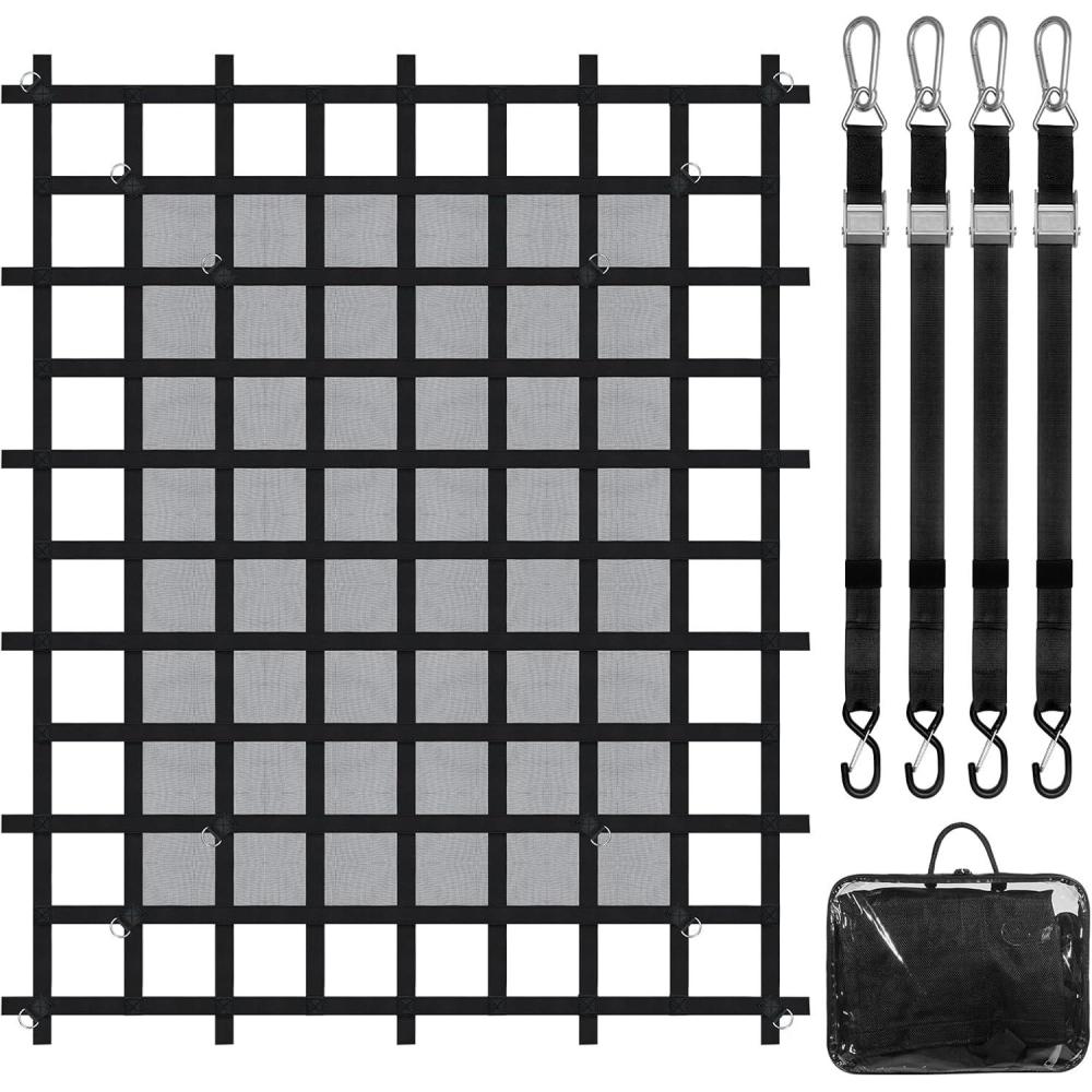 Load Capacity Up to 1100 lbs: Our heavy duty cargo net is made of reinforced PP material to ensure its load-bearing capacity, and the 1.5″ width webbing is reinforced with precision nylon stitching to minimize stretching abrasion caused by long-term use and prolong its service life.