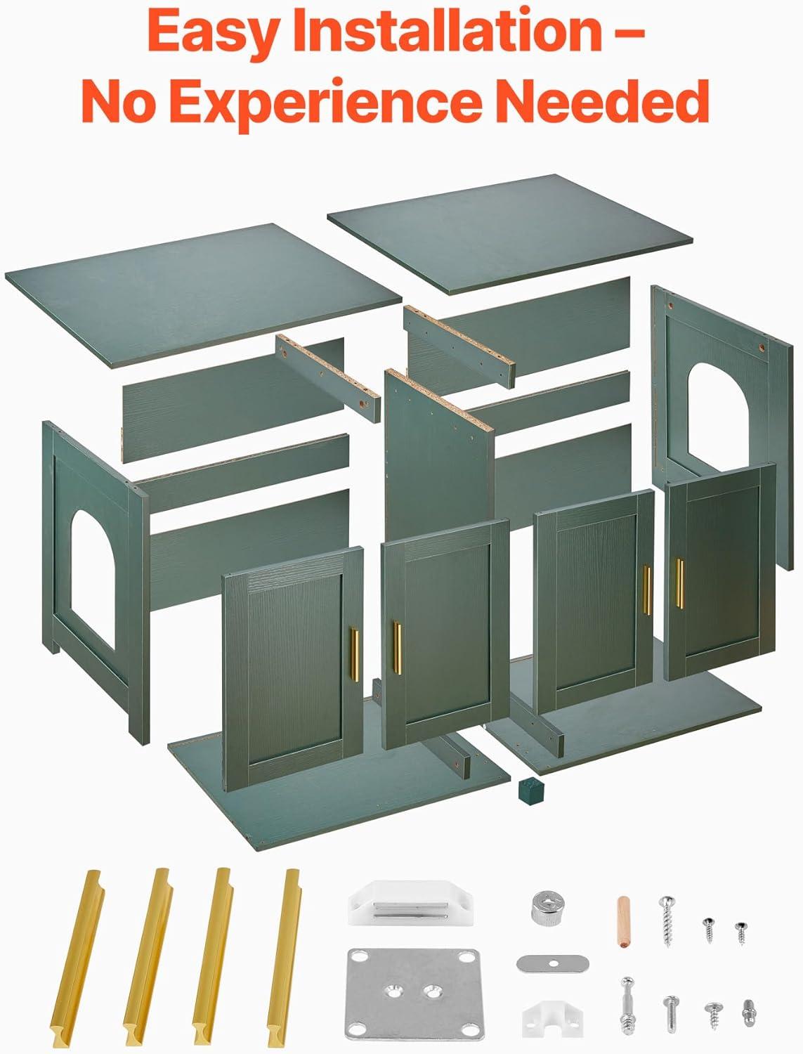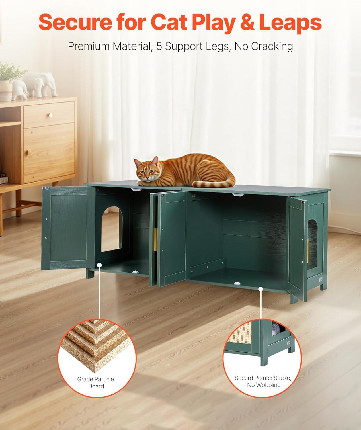 Stylish & Multi-Functional: Our cat litter box enclosure with elegant green colored body, and golden aluminum handles, make it vintage and stylish. The sturdy and heavy-loading top can double as a cat bed, storage cabinet, or side table. One litter box enclosure, seamlessly blends with various home decoration styles while saving space.