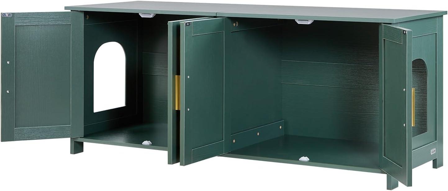 VEVOR Cat Litter Box Enclosure for Multi Cats, 47.2 in Hidden Litter Box Cabinet with 4 Doors & 2 Entries, Indoor Cat Washroom, Wooden Kitty House Furniture Side Table, Fit Most Litterboxes, Green(Retro Green)