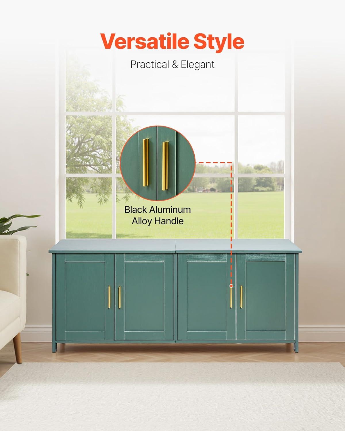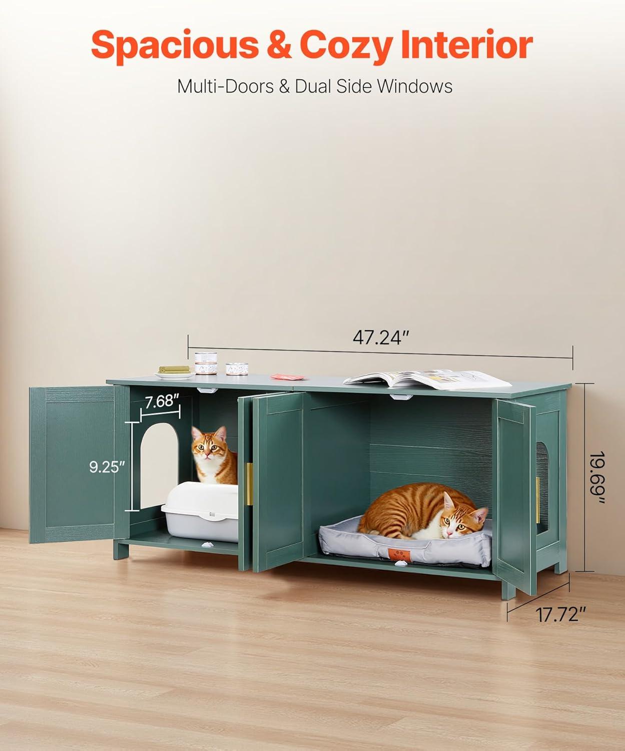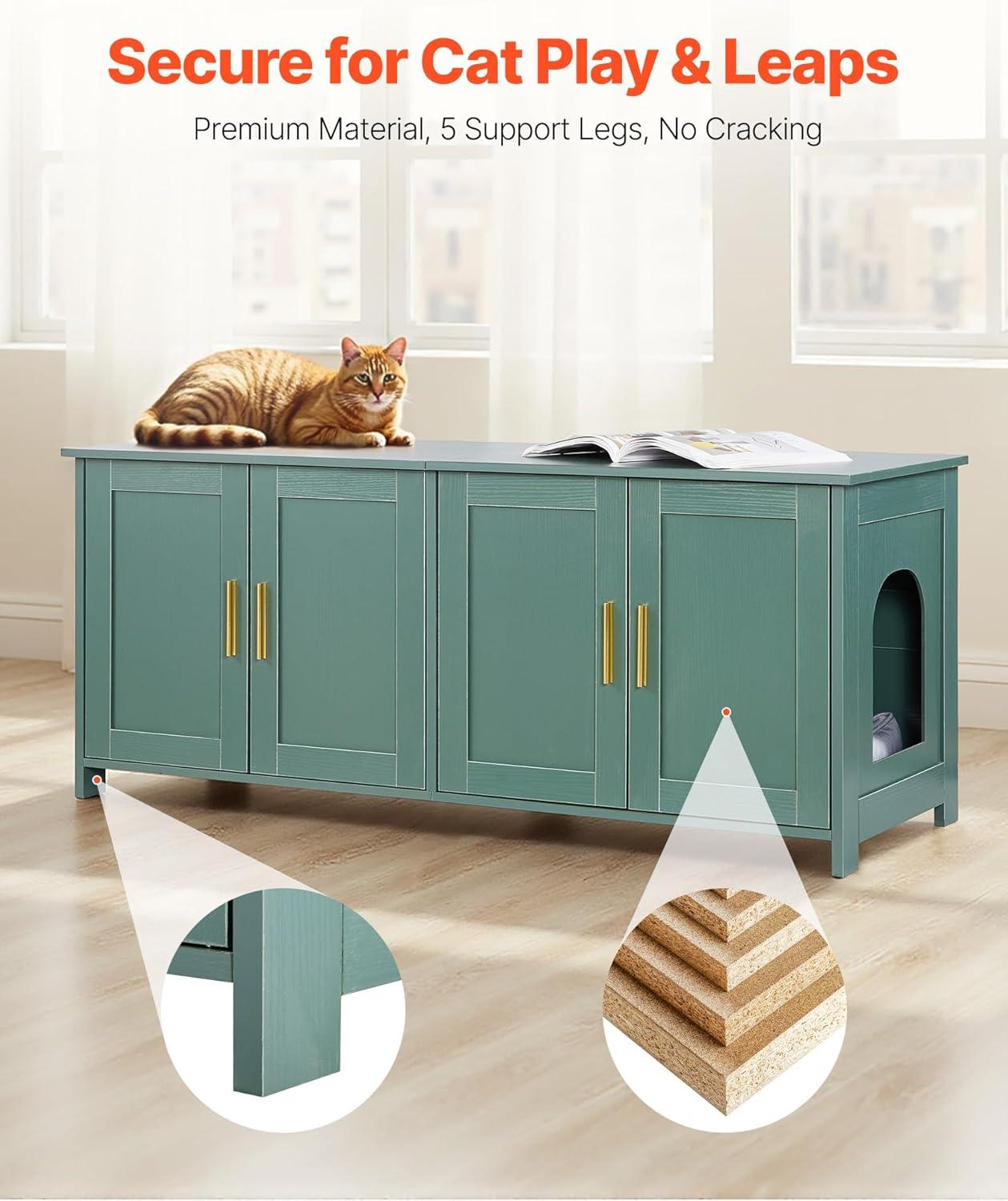 VEVOR Cat Litter Box Enclosure for Multi Cats, 47.2 in Hidden Litter Box Cabinet with 4 Doors & 2 Entries, Indoor Cat Washroom, Wooden Kitty House Furniture Side Table, Fit Most Litterboxes, Green(Retro Green)