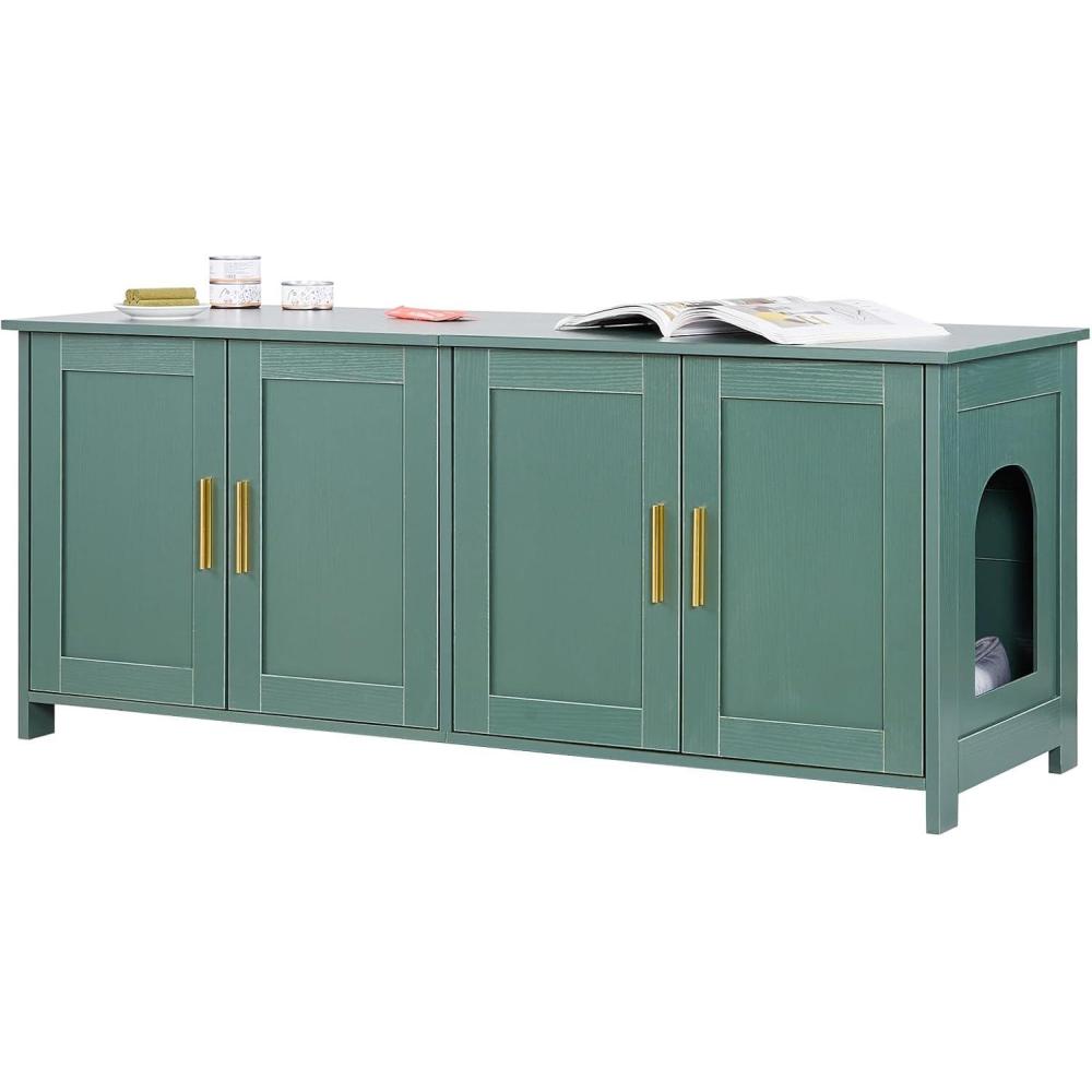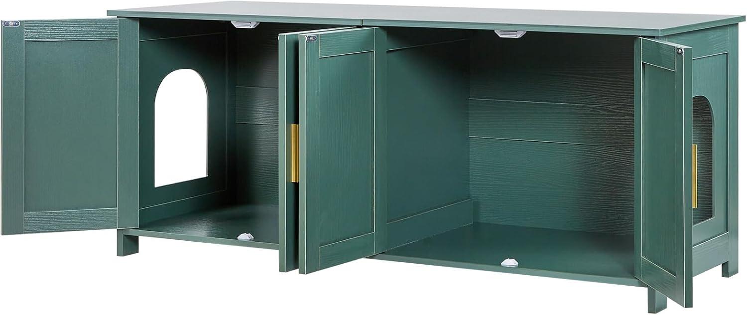 Stylish & Multi-Functional: Our cat litter box enclosure with elegant green colored body, and golden aluminum handles, make it vintage and stylish. The sturdy and heavy-loading top can double as a cat bed, storage cabinet, or side table. One litter box enclosure, seamlessly blends with various home decoration styles while saving space.