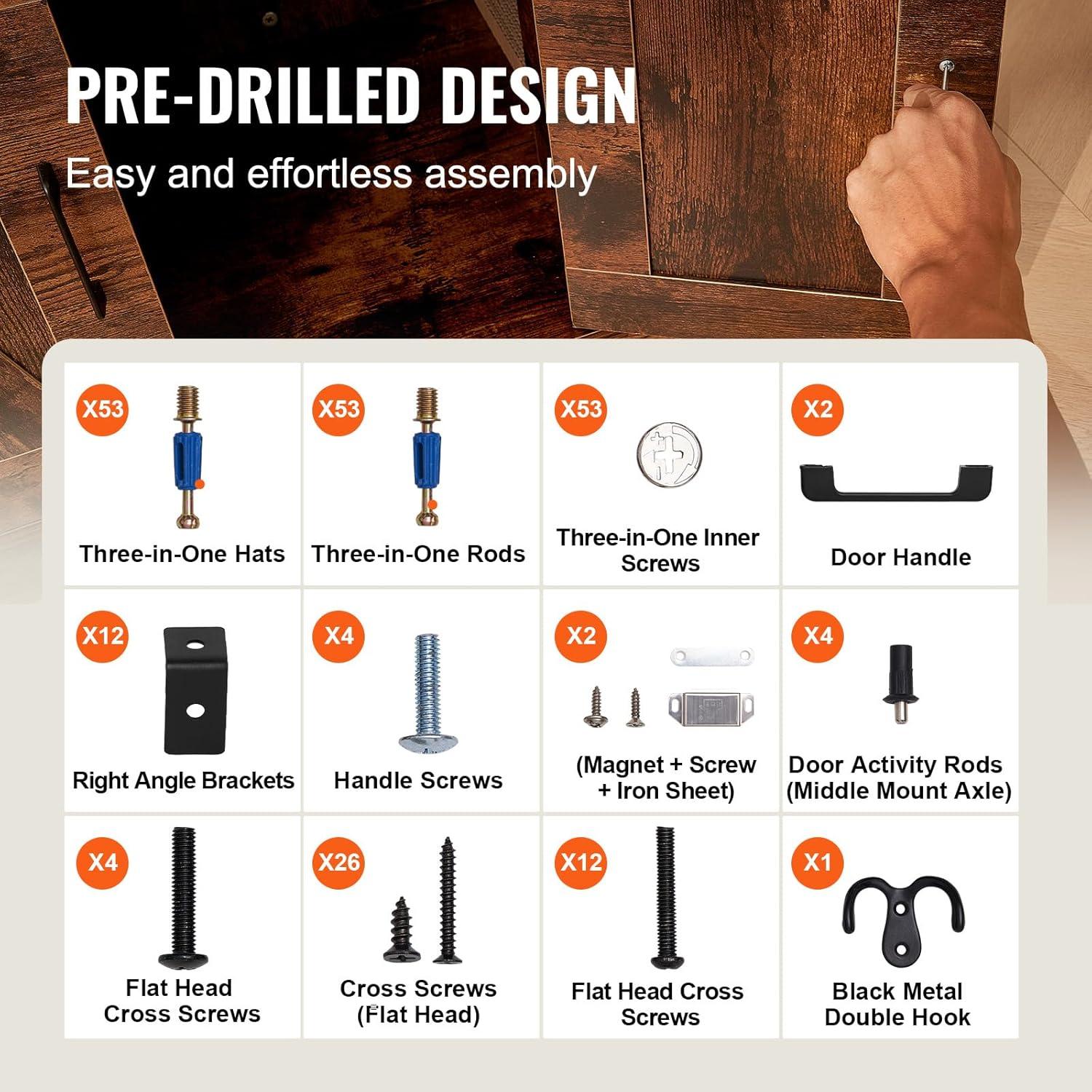 More Considerate Details: The magnetic door makes this cat box enclosure opening and closing effortless; cat scratching board provides playful entertainment for your pet. A handy shovel hook offers easy storage, and the ventilation holes ensure proper airflow to keep the interior dry, creating a more comfortable and welcoming cat house cabinet. It's designed with reserved space at the shelf support feet, you can choose to assemble at your will. You can choose the place to put in the screws according to the manual.