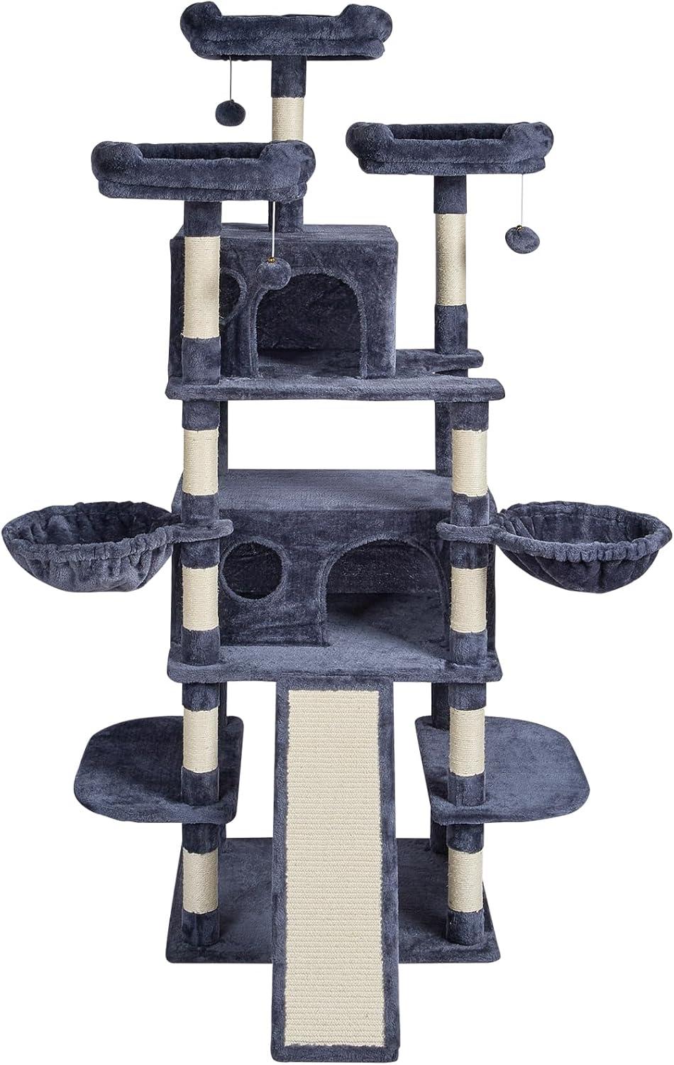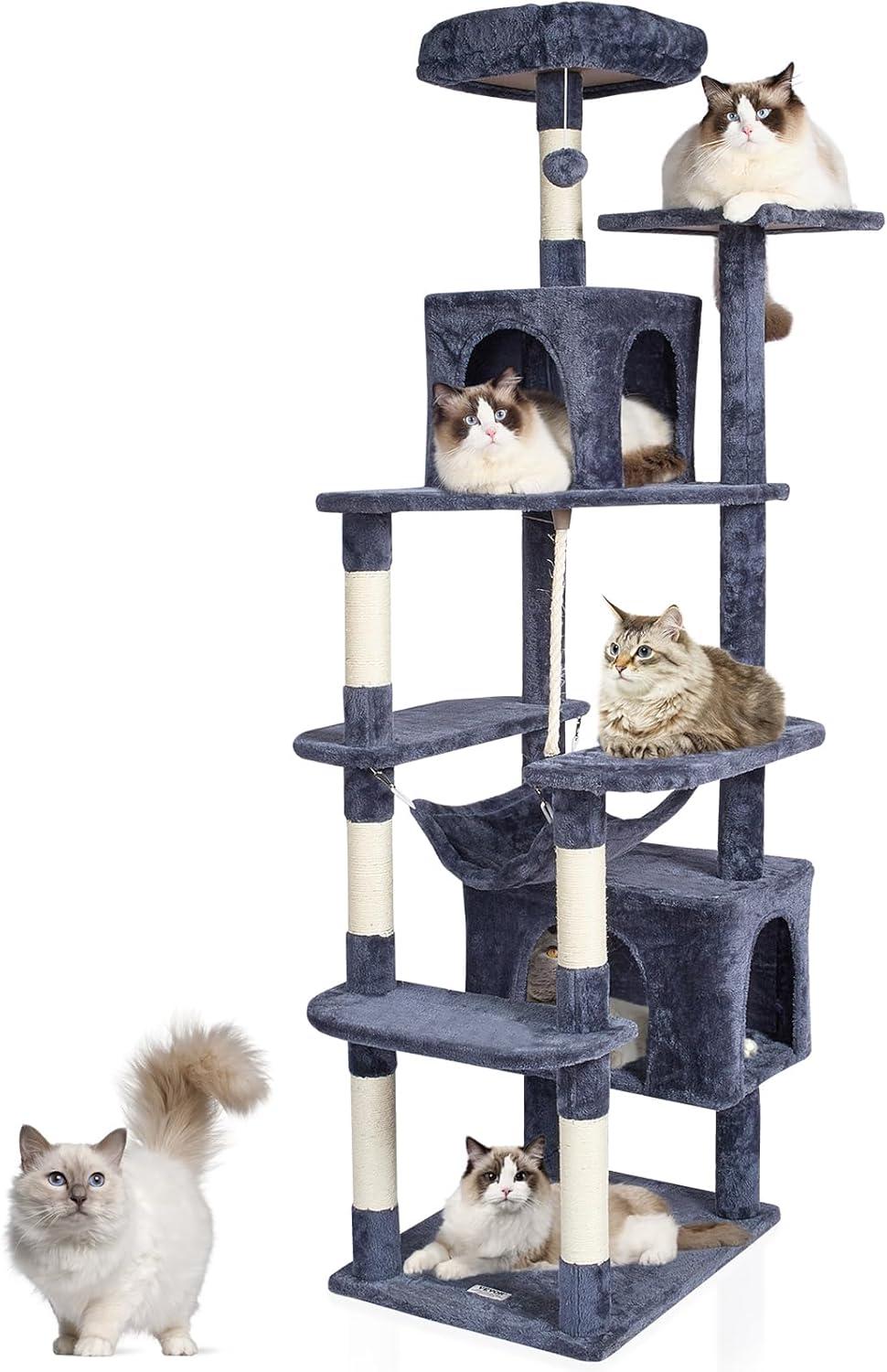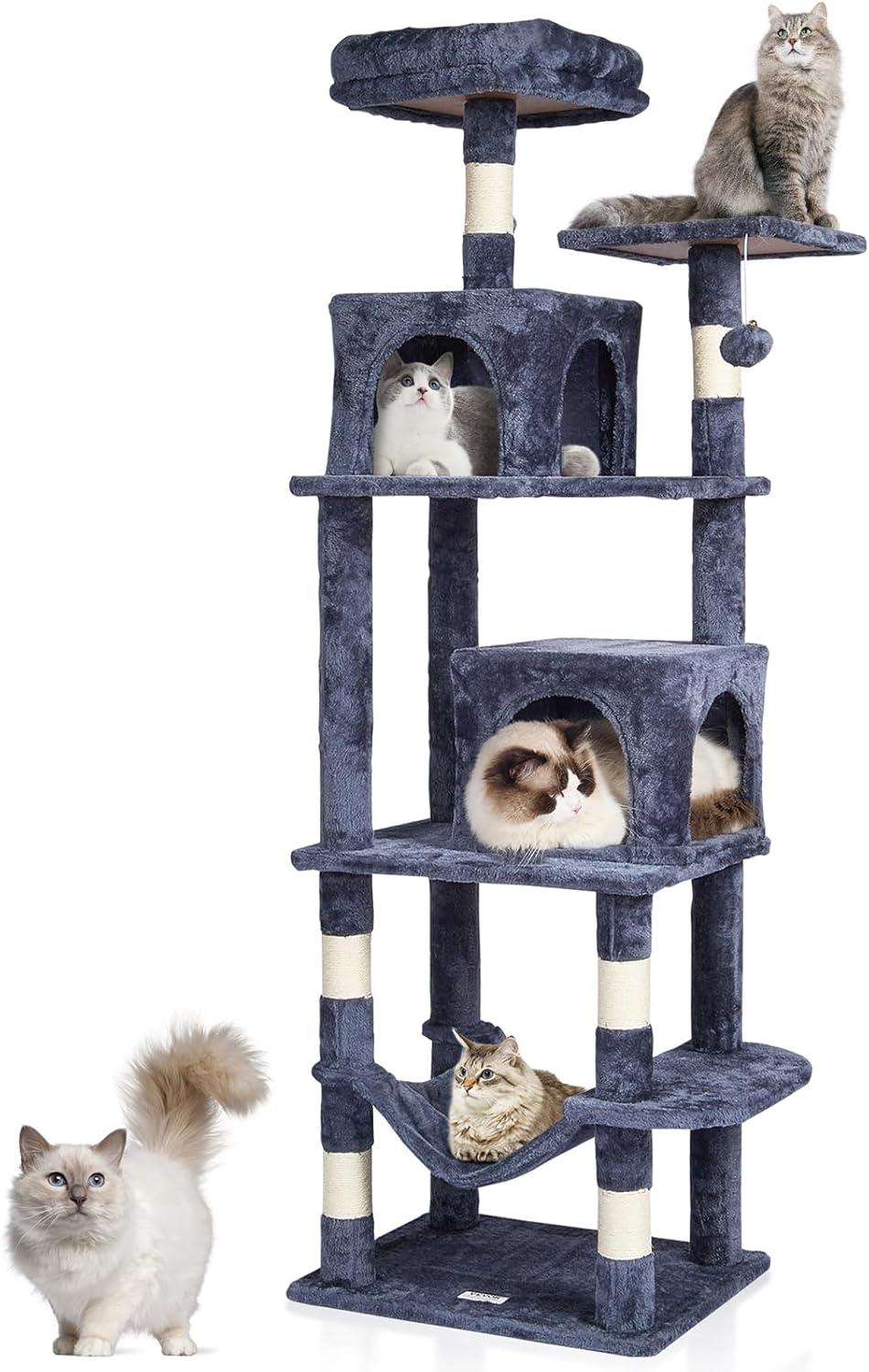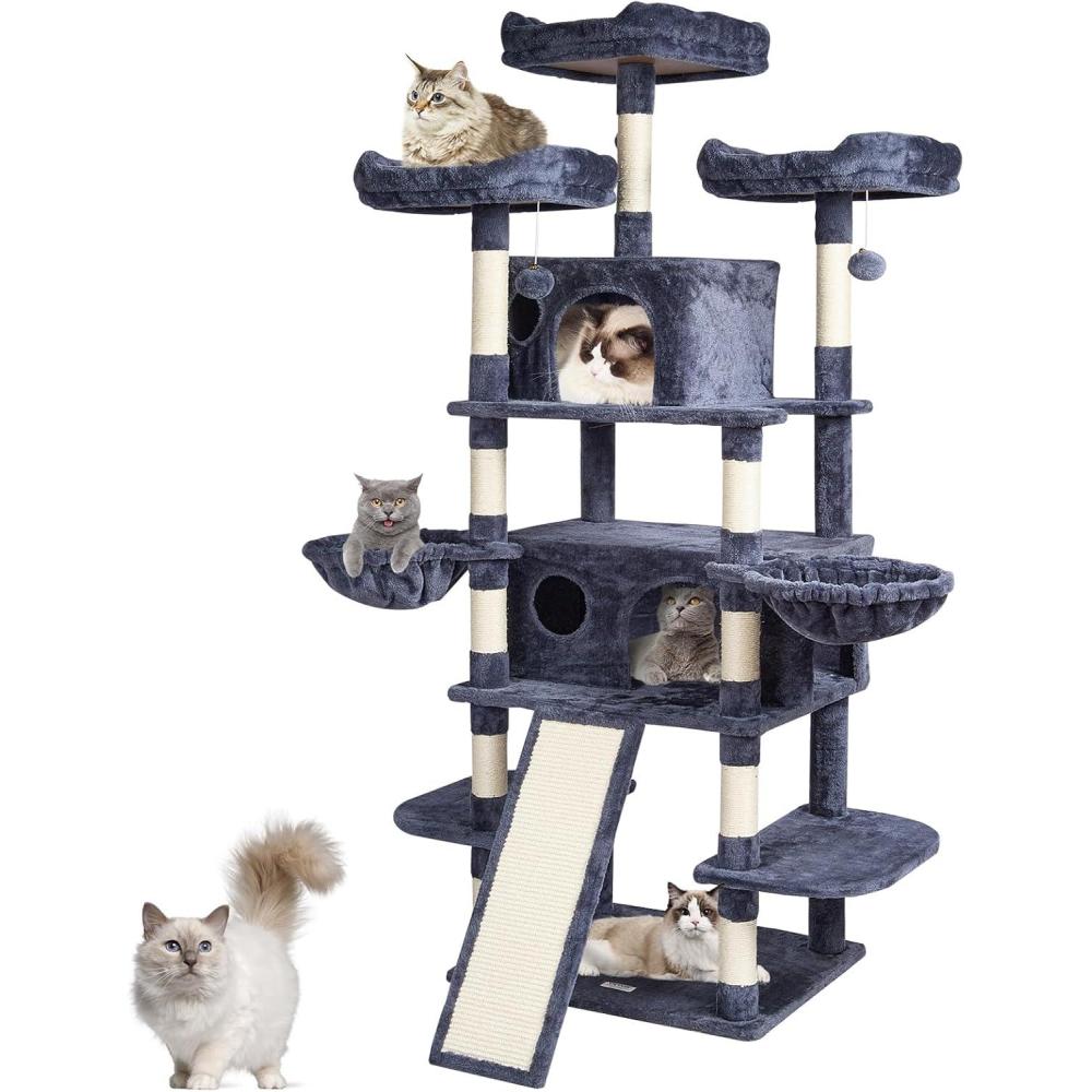 Cats' Cozy Haven: The cat tower features a spacious cat condo, top perch, and hammock, providing a private and secure resting environment. There are multiple platforms for cats to freely choose where to play and rest. Soft plush surfaces are gentle on cats' skin and claws, ensuring a comfortable lounging experience.