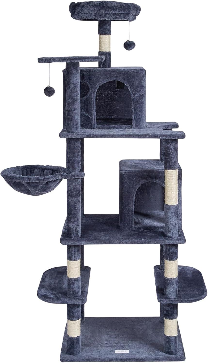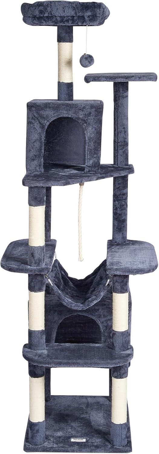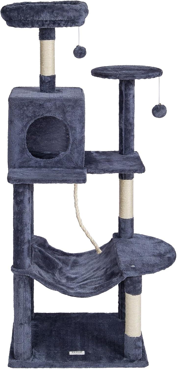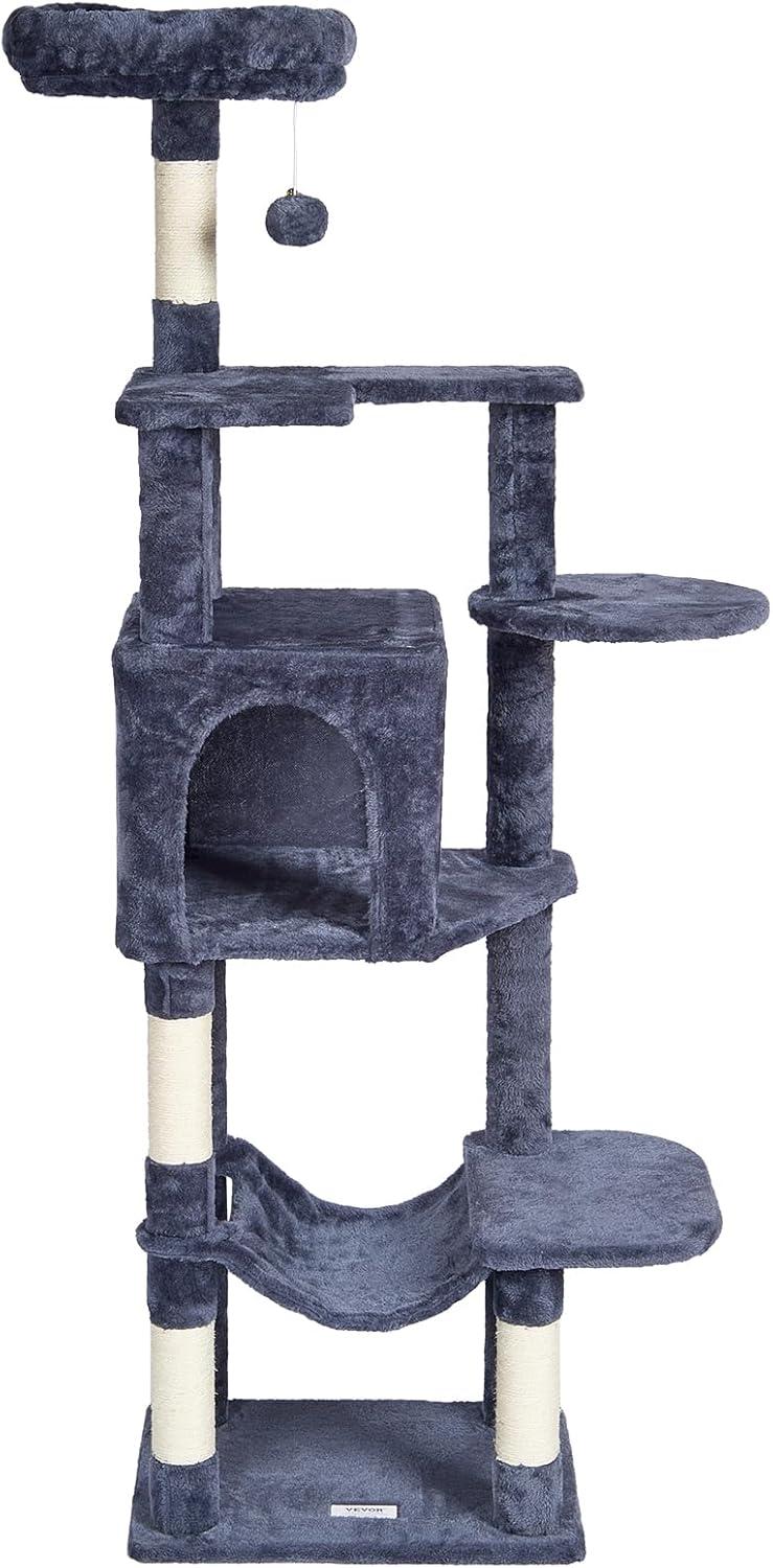 Cat Activity Center: This multi-level cat tree is perfect for 1-4 small to medium-sized cats. Various height platforms allow cats to climb freely, satisfying their exploration needs. Whether the top or the low resting area, every cat can find their ideal space.