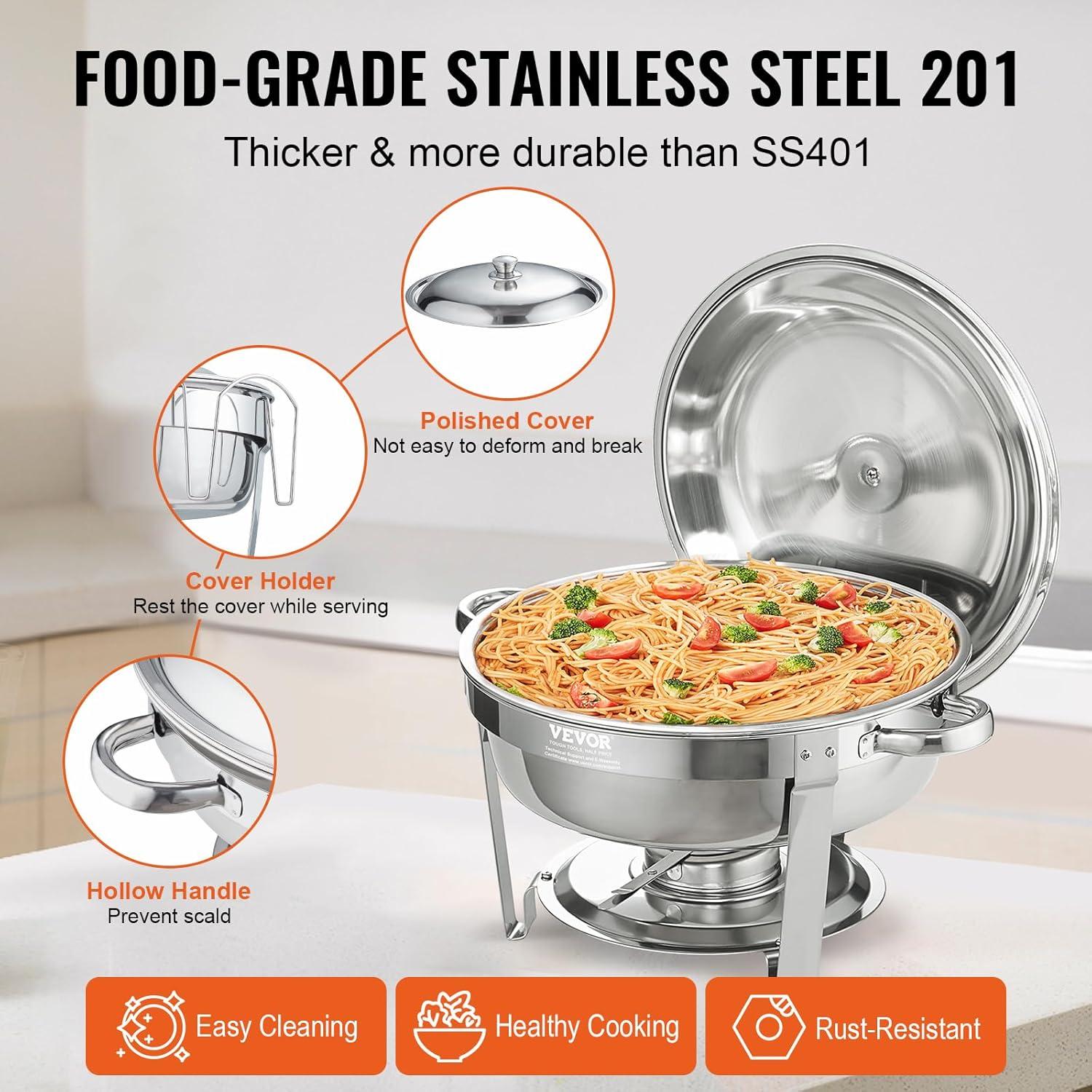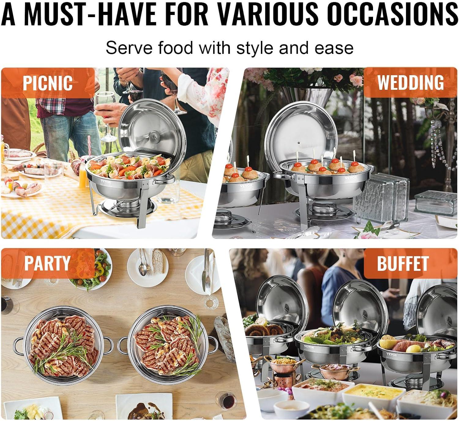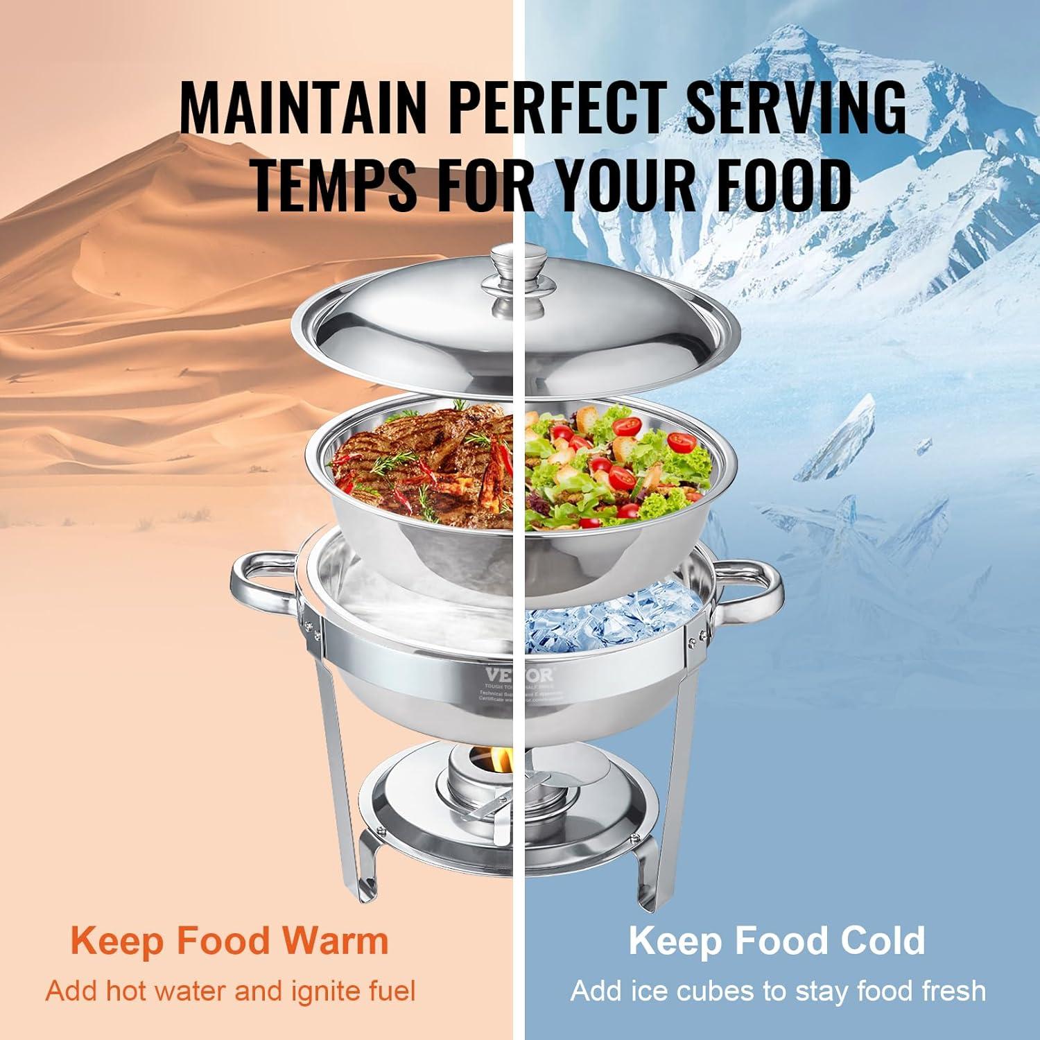 Get ready to keep all your delicious foods fresh and ready to serve. 5QT catering food warmer set is suitable for commercial and family use. The chafing dish is your trusted ally in delivering both style and substance to the table. Let's dive into the world of this timeless culinary marvel.