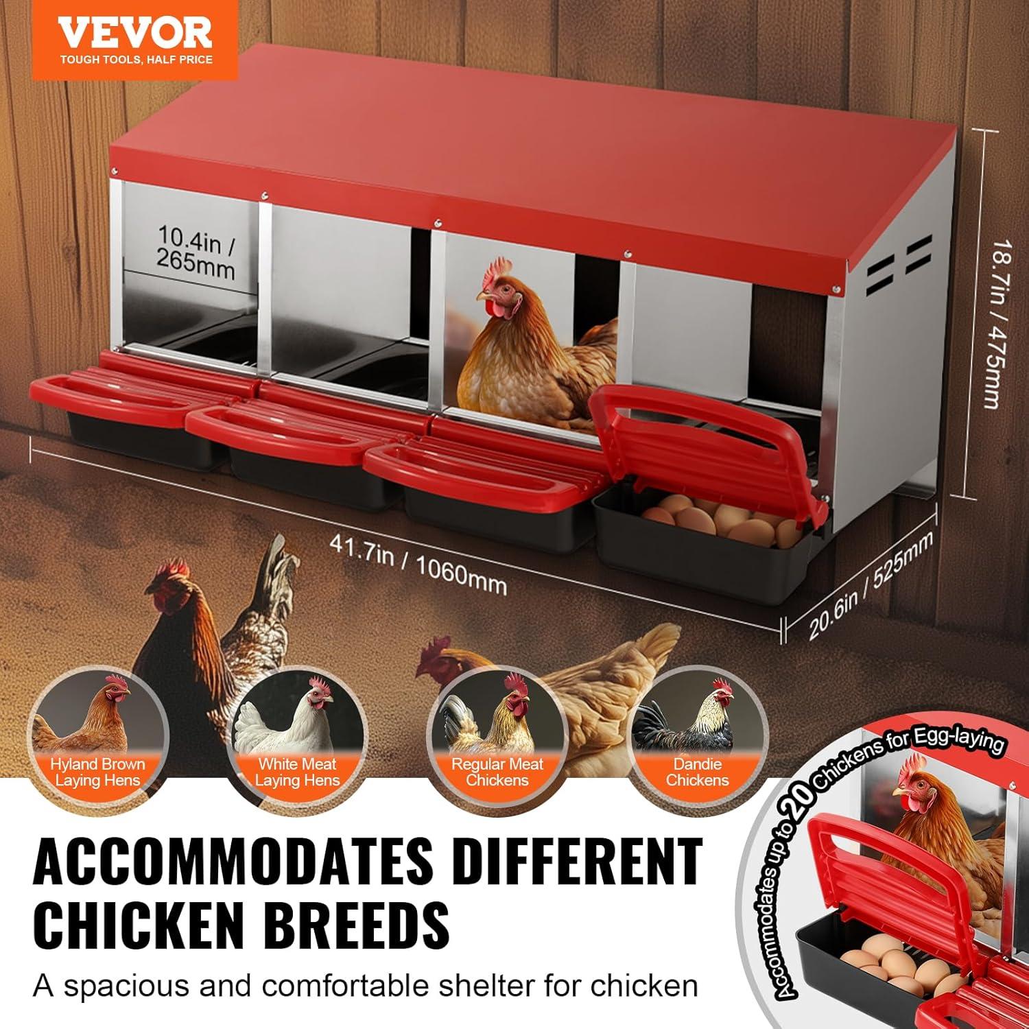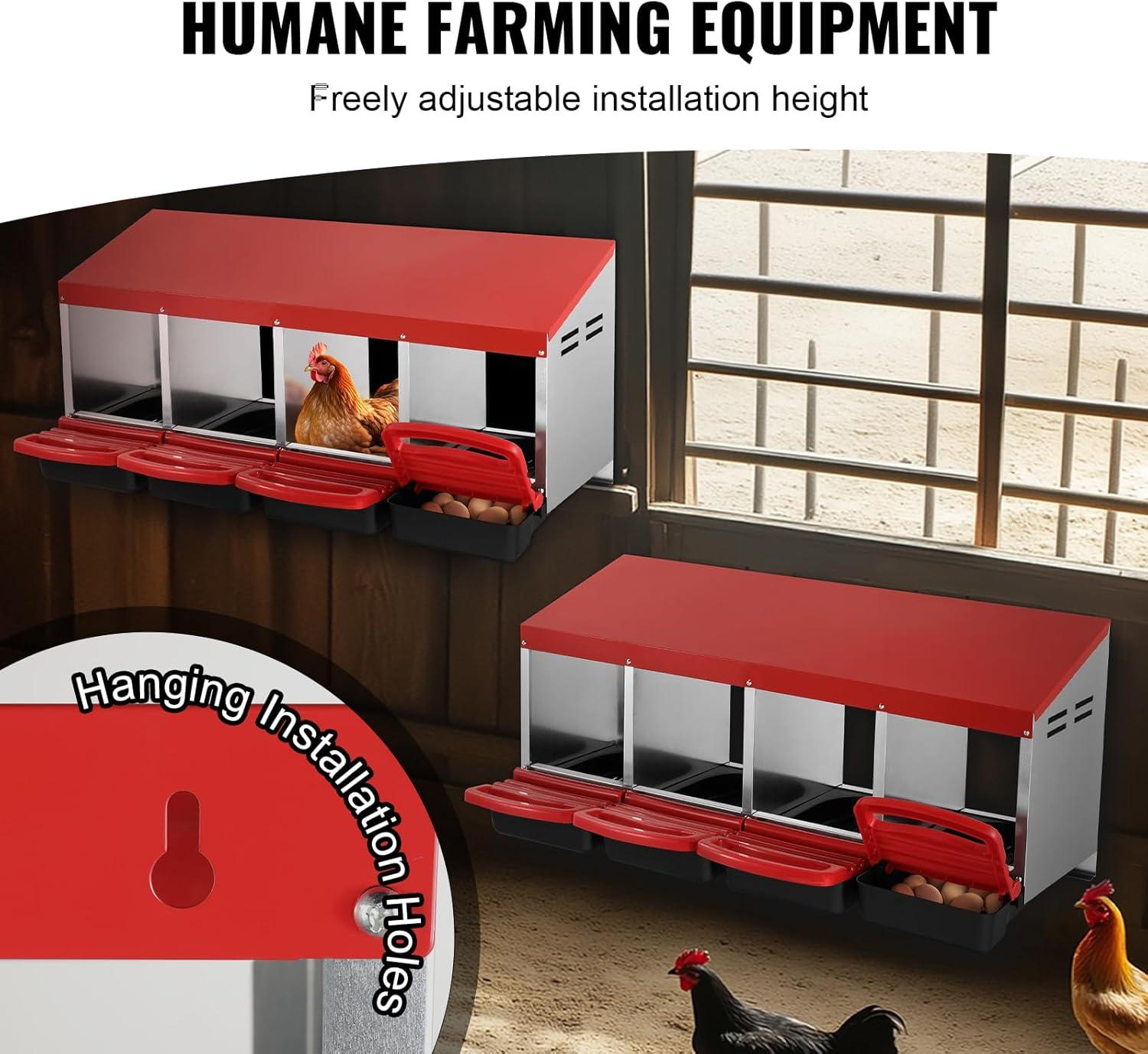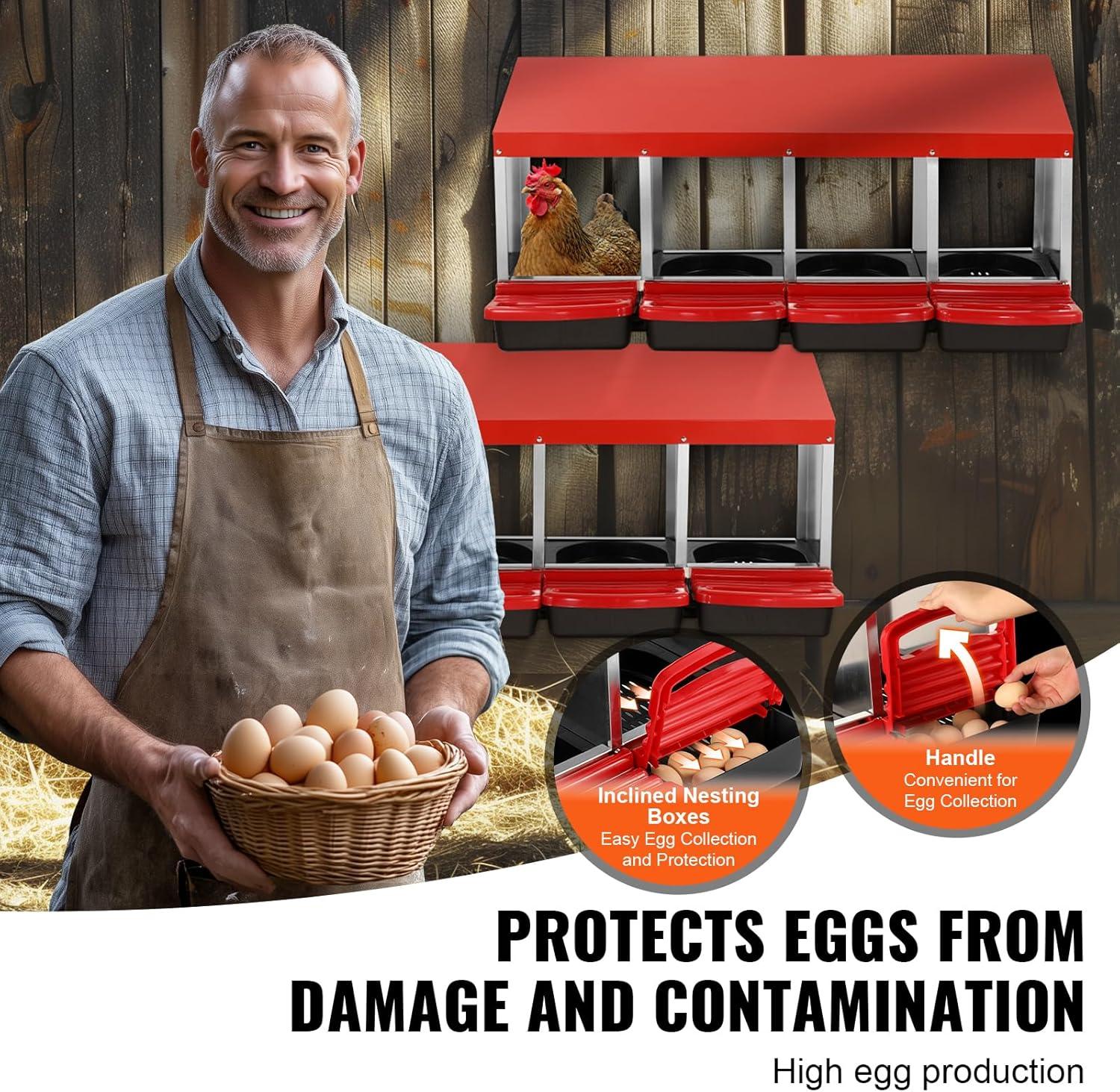 VEVOR Chicken Nest Box, 8-Compartment, 30 to 45 in Stable & Corrosion-Resistant Metal Nesting Boxes with Inclined Nesting Boxes, Bottom Holes & Resting Platform, Fit for Different Chicken Breeds(4 Holes)