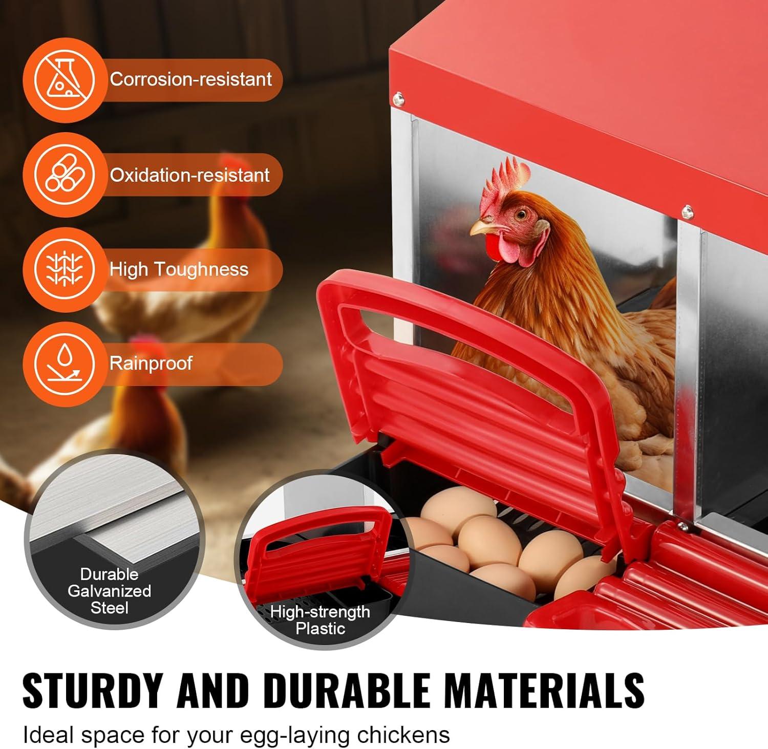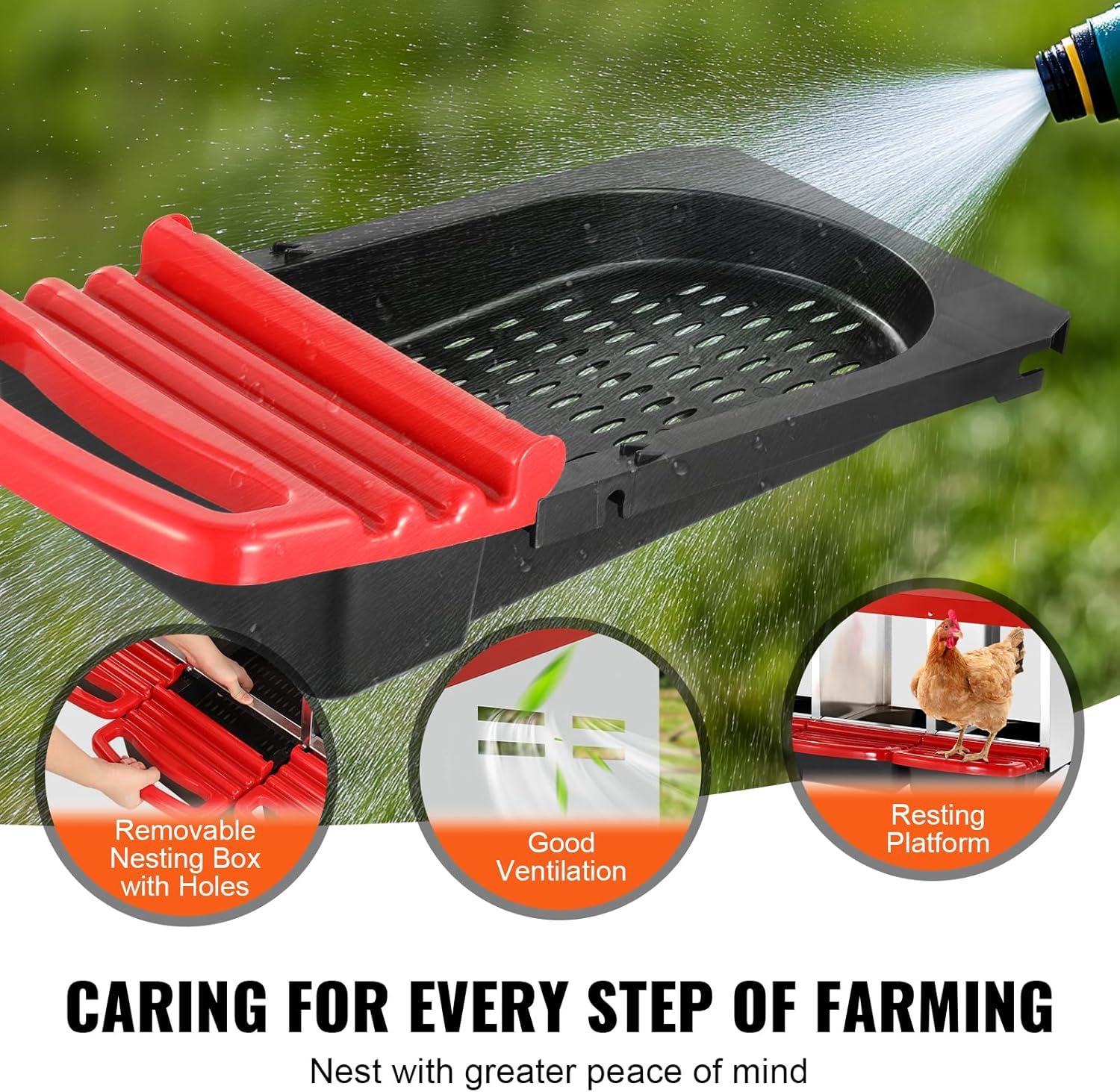 Sturdy & Comfortable: The nesting boxes are made of high-quality galvanized steel and strong, easy-to-clean plastic to ensure that they won't rust or wear out over long periods of use and in harsh weather conditions. Additionally, our spacious laying boxes feature a large room with a ventilated design to ensure fresh air circulation and keep the nesting environment dry and cool.