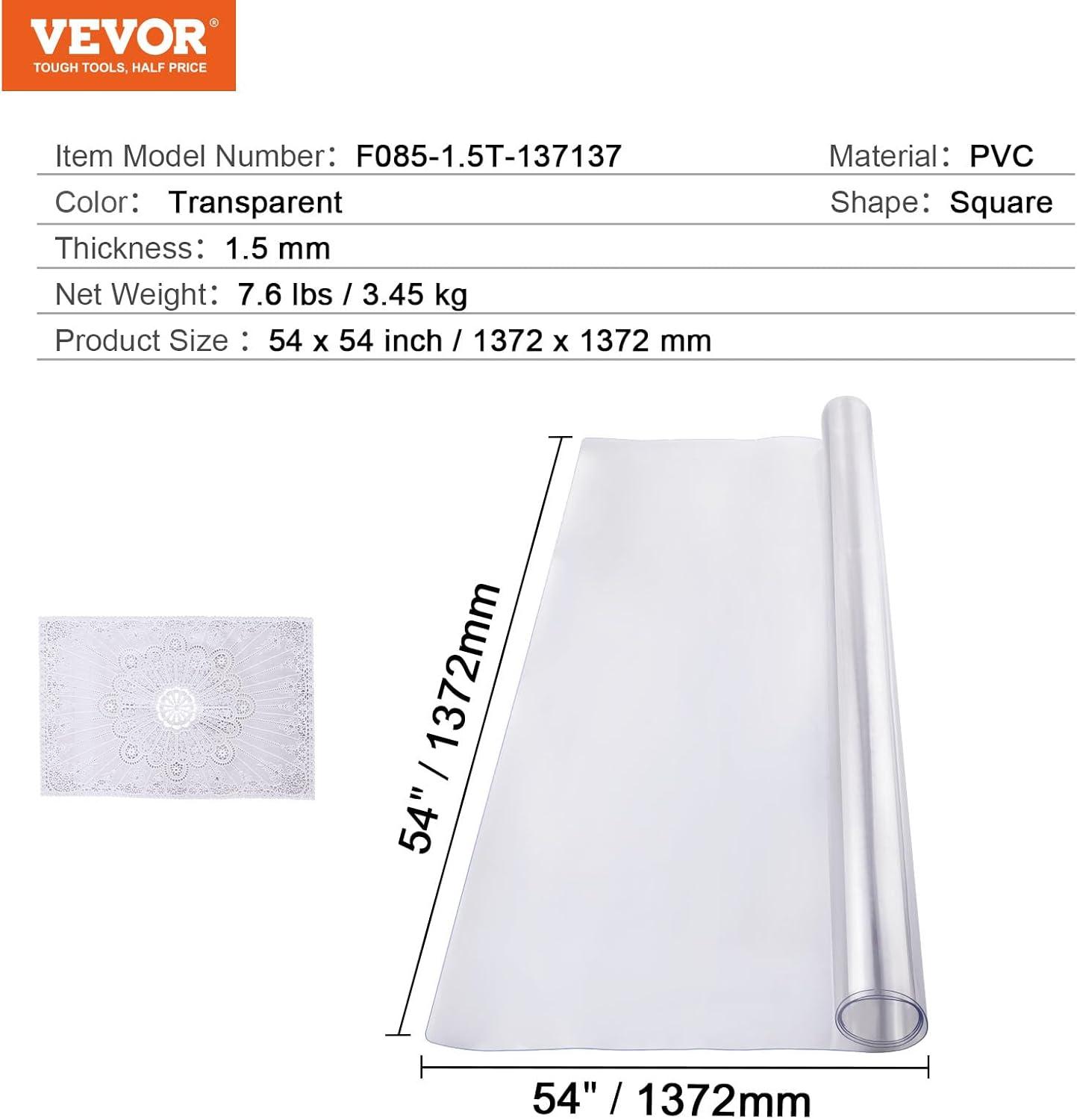 VEVOR Clear Desk Cover Protector, 36 X 60 inch, 2 mm Rectangle Waterproof Thick Plastic Clear Pad Mat, Scratch Proof and Easy Cleaning for Office, Dresser, Night Stand(54″ x 54″ (Square))