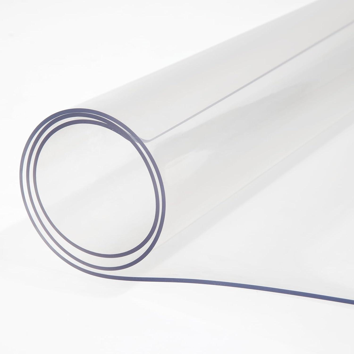 VEVOR Clear Table Cover Protector, 48 inch/1230 mm Round Table Cover, 1.5 mm Thick PVC Plastic Tablecloth, Waterproof Desktop Protector for Writing Desk, Coffee Table, Dining Room Table(100" x 45" (Rectangular))