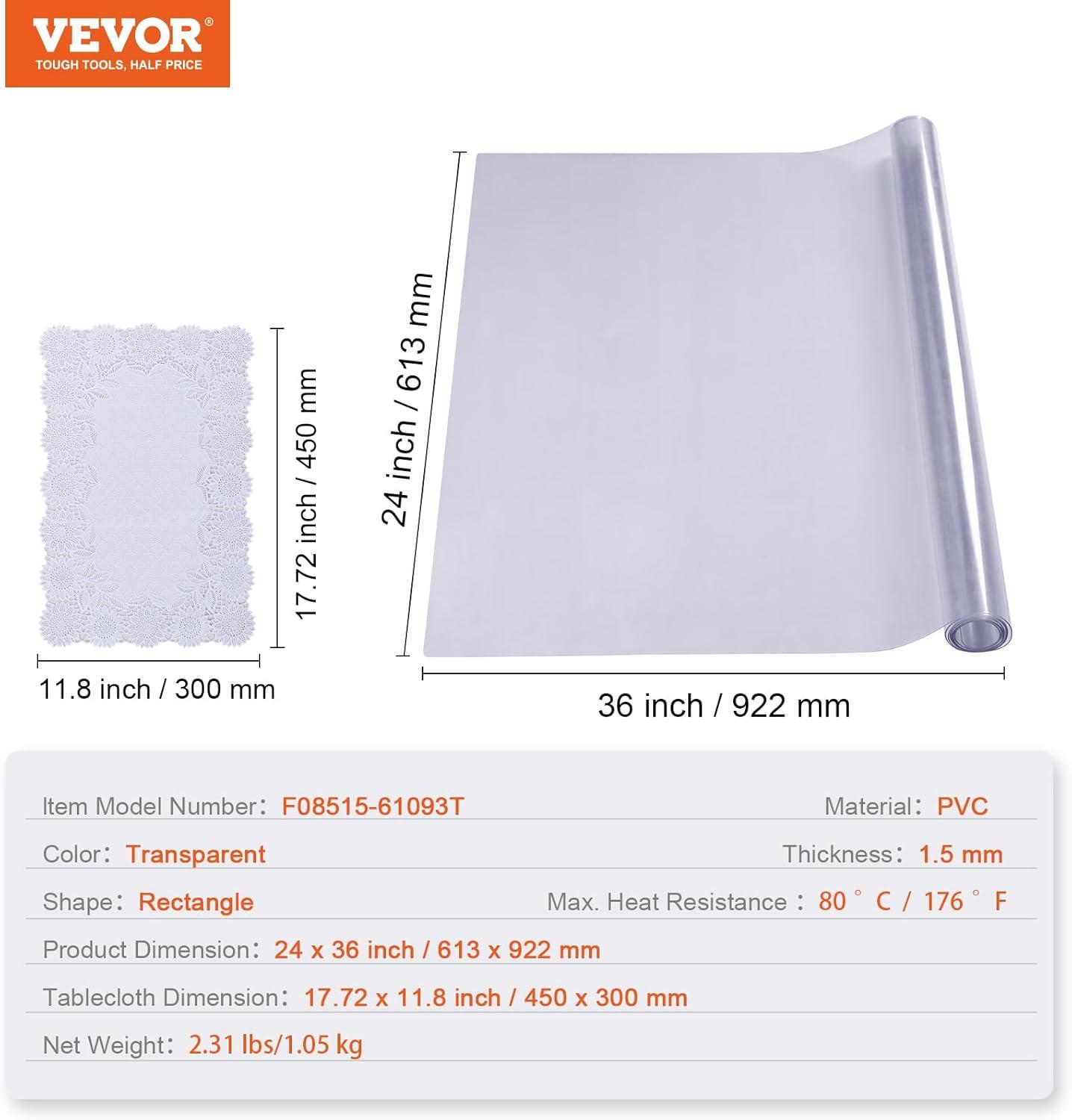 Get the VEVOR Clear Table Cover Protector, 48 inch/1230 mm Round Table Cover, 1.5 mm Thick PVC Plastic Tablecloth, Waterproof Desktop Protector for Writing Desk, Coffee Table, Dining Room Table(36″ x 24″ (Rectangular)) you want at a price you can afford with our markdown sale.