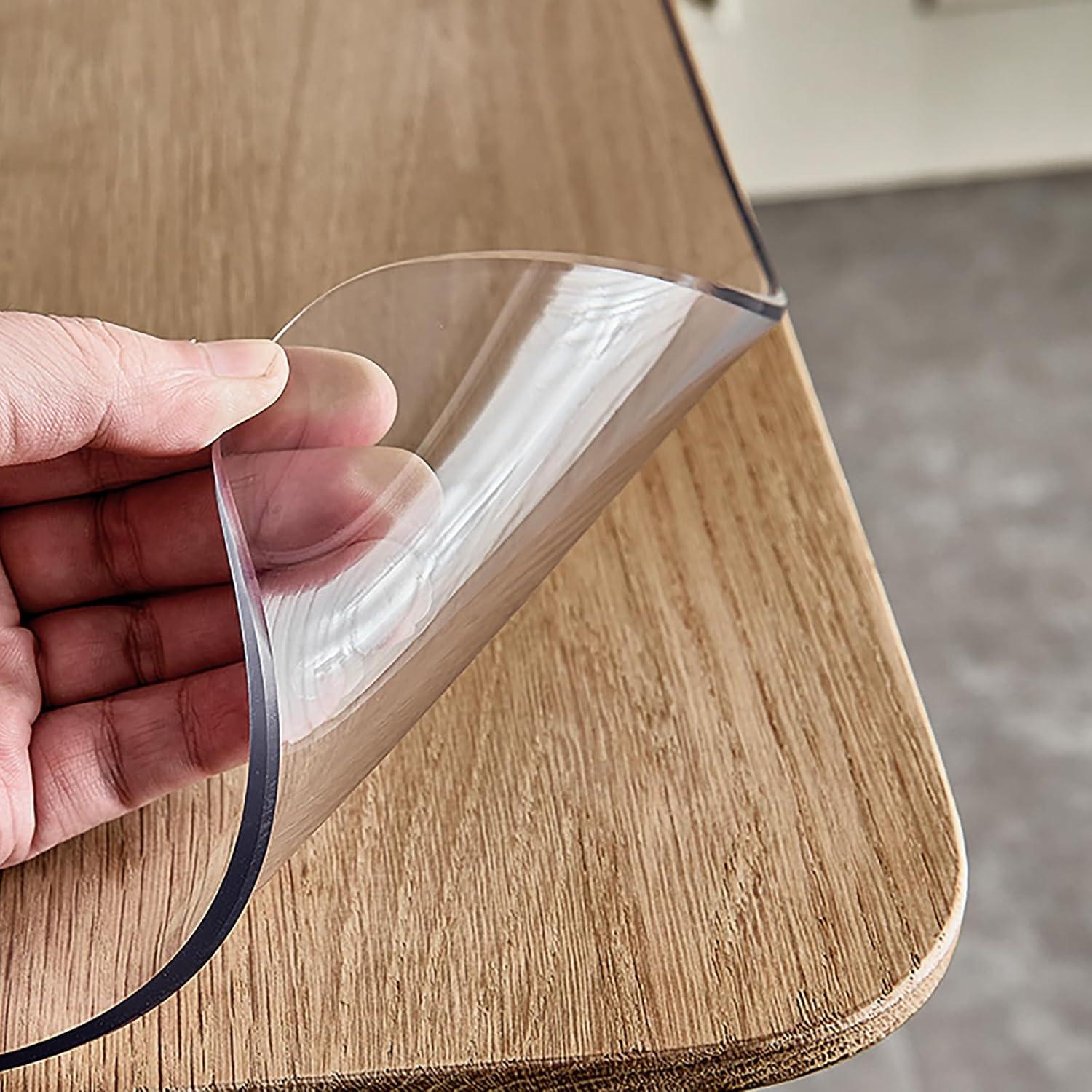 Versatile Applications: Our clear table cover protector can enhance a variety of environments, including homes, offices, restaurants, and event venues. They are suitable for wooden textured desktops such as dining tables, kitchen countertops, end tables, computer tables, dressers, TV cabinets, and more. Unlock limitless possibilities and enhance your experience!