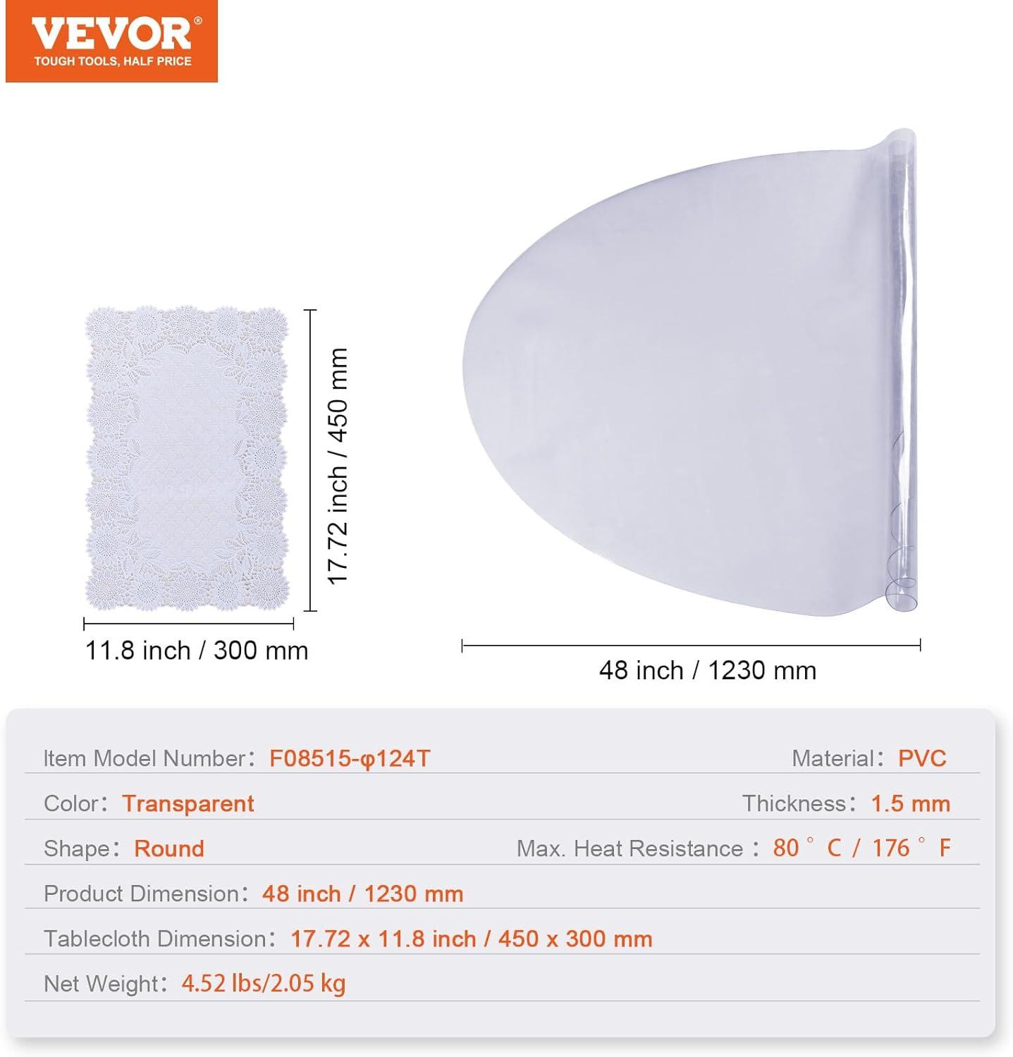 VEVOR Clear Table Cover Protector, 48 inch/1230 mm Round Table Cover, 1.5 mm Thick PVC Plastic Tablecloth, Waterproof Desktop Protector for Writing Desk, Coffee Table, Dining Room Table(48″ (Round))