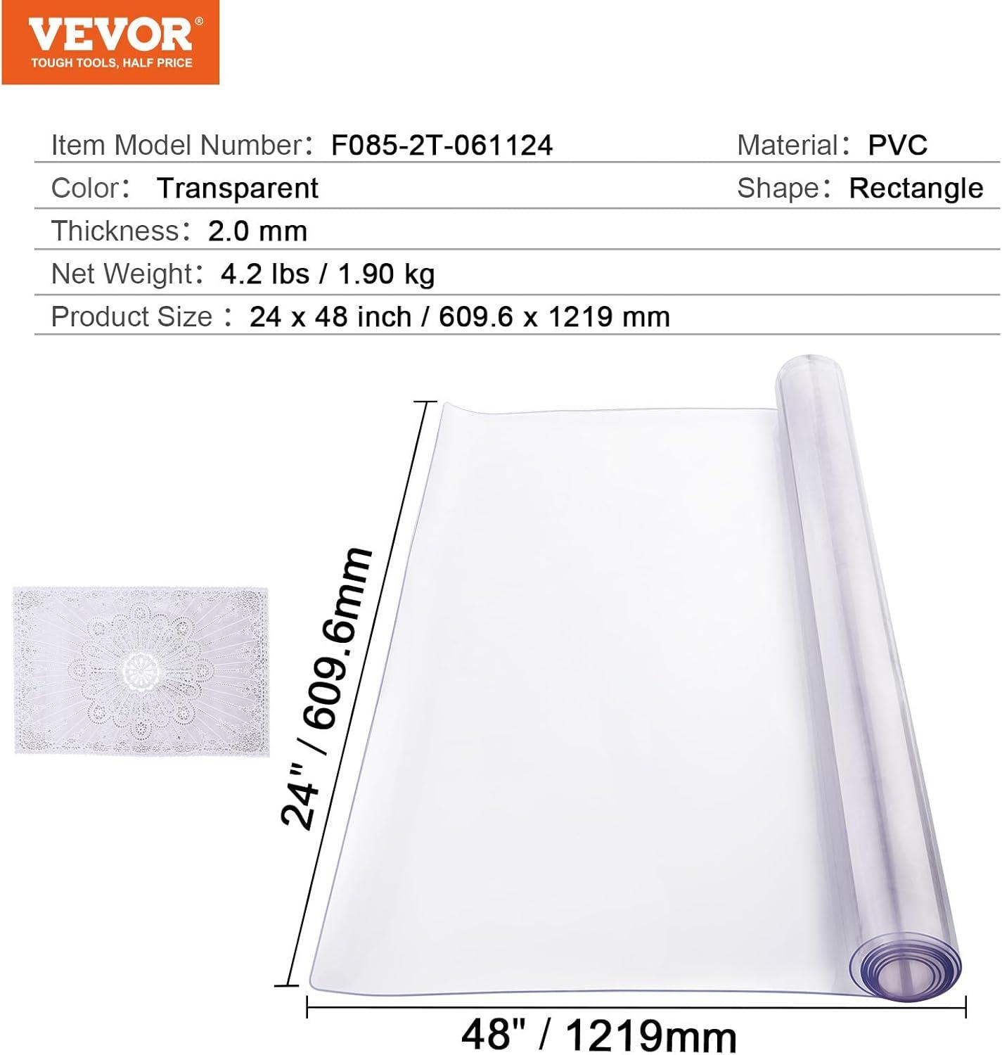 VEVOR Clear Table Cover Protector, 48 inch/1230 mm Round Table Cover, 1.5 mm Thick PVC Plastic Tablecloth, Waterproof Desktop Protector for Writing Desk, Coffee Table, Dining Room Table(48″ x 24″ (Rectangular))