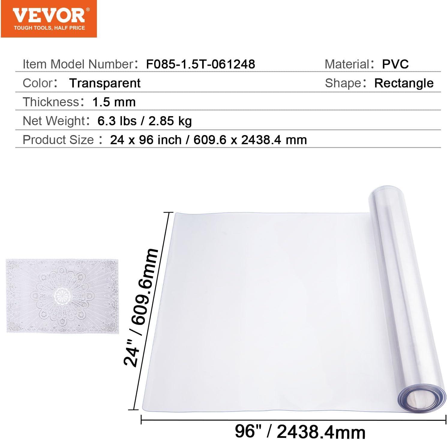 VEVOR Clear Table Cover Protector, 48 inch/1230 mm Round Table Cover, 1.5 mm Thick PVC Plastic Tablecloth, Waterproof Desktop Protector for Writing Desk, Coffee Table, Dining Room Table(96″ x 24″ (Rectangular))