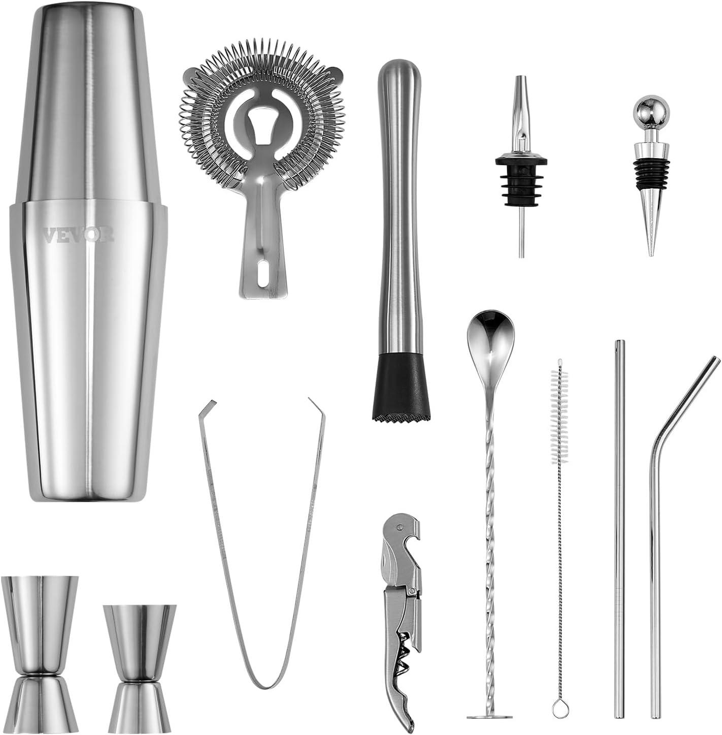 Score big on VEVOR Cocktail Shaker Set, 13-Piece Stainless Steel Bar Tools with Bamboo Stand, Boston Bartender Kit | Mixer Spoon, Muddler, Jigger, Strainer, Liquor Pourers, Ice Scoop, Lemon Zester, Gunmetal(Black+silver) and accessories during our BOGO sale. Buy one, get one 50% off!