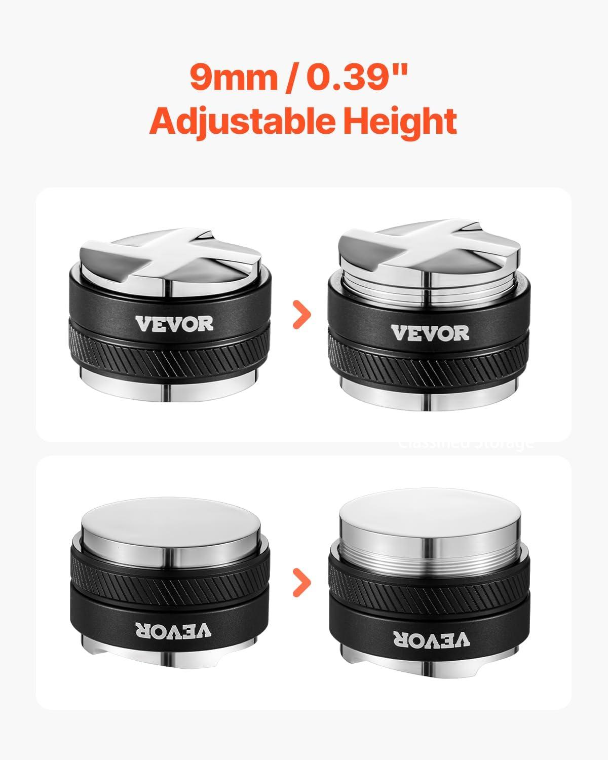 0.39″ Adjustable Height: This coffee distributor’s Height adjustment accommodates different portafilter depths, ensuring a consistent tamp and higher-quality espresso, whether using standard or custom-sized portafilters.