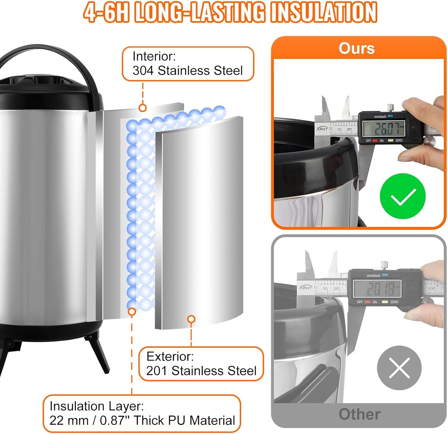 Large Capacity: This commercial beverage dispenser features a 18L tank capacity, accommodating a large volume of beverages. It provides a reliable cold beverage experience and easily handles customer traffic. Equipped with a rubber sealing ring to prevent beverage leakage.