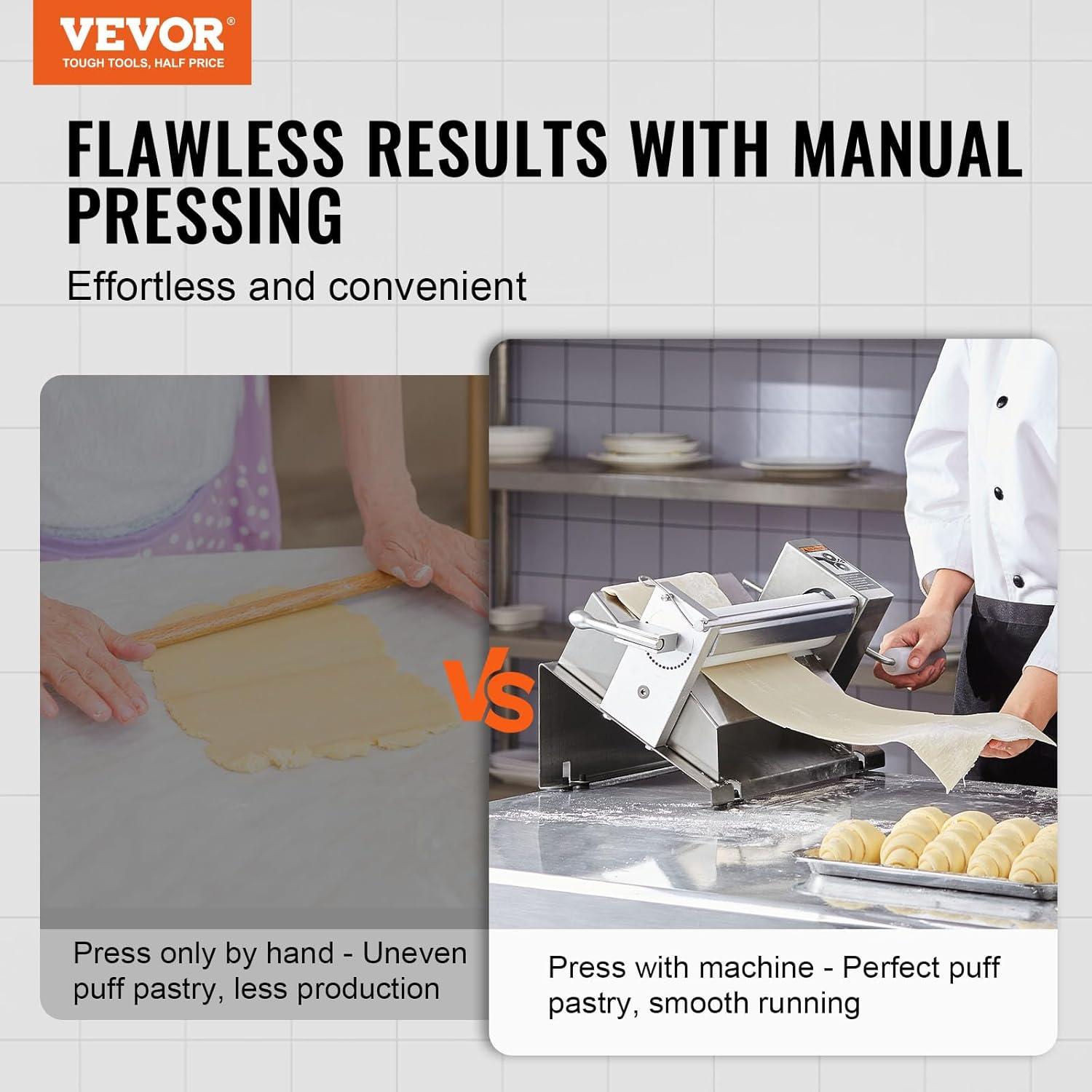 VEVOR Commercial Dough Sheeter Machine, 19.7-Inch Reversible Puff Pastry Sheeter and Fondant Roller, Electric Dough Roller 0-1.4″ Adjustable Thickness, Folding Dough Sheeter for Bakeries, Pastries(11 inch)