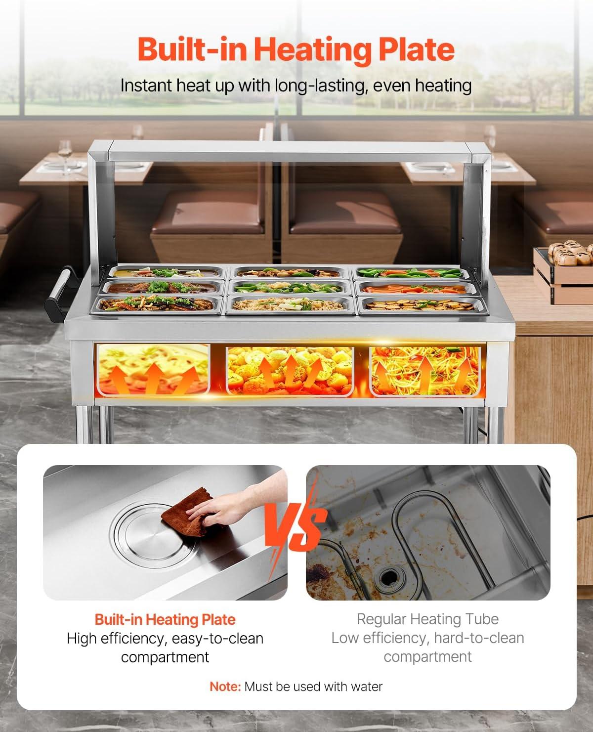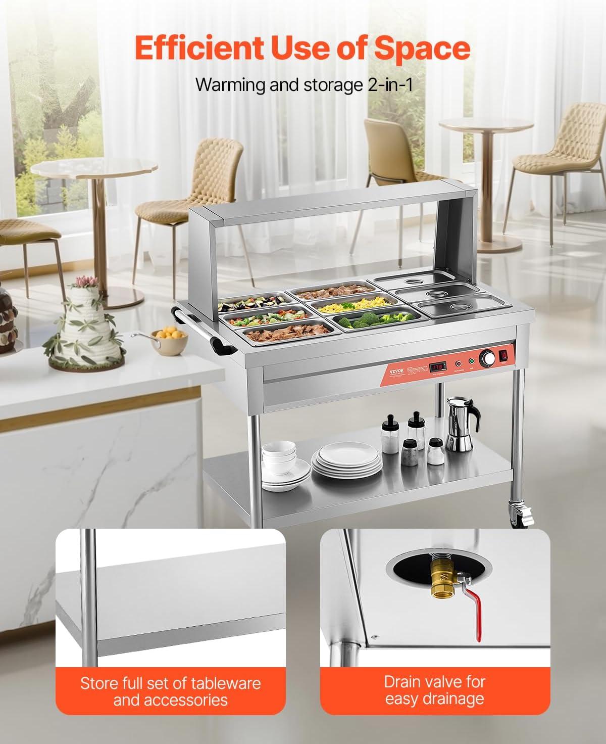 Don’t miss out on our limited-time offer: buy VEVOR Commercial Electric Food Warmer, 7 Pans + 2 Pots Steam Table, 1800W Professional Buffet Catering Food Warmer with Shield Undershelf Wheels, Stainless Steel Server for Party Restaurant(9-Pan), get a free {accessory}!