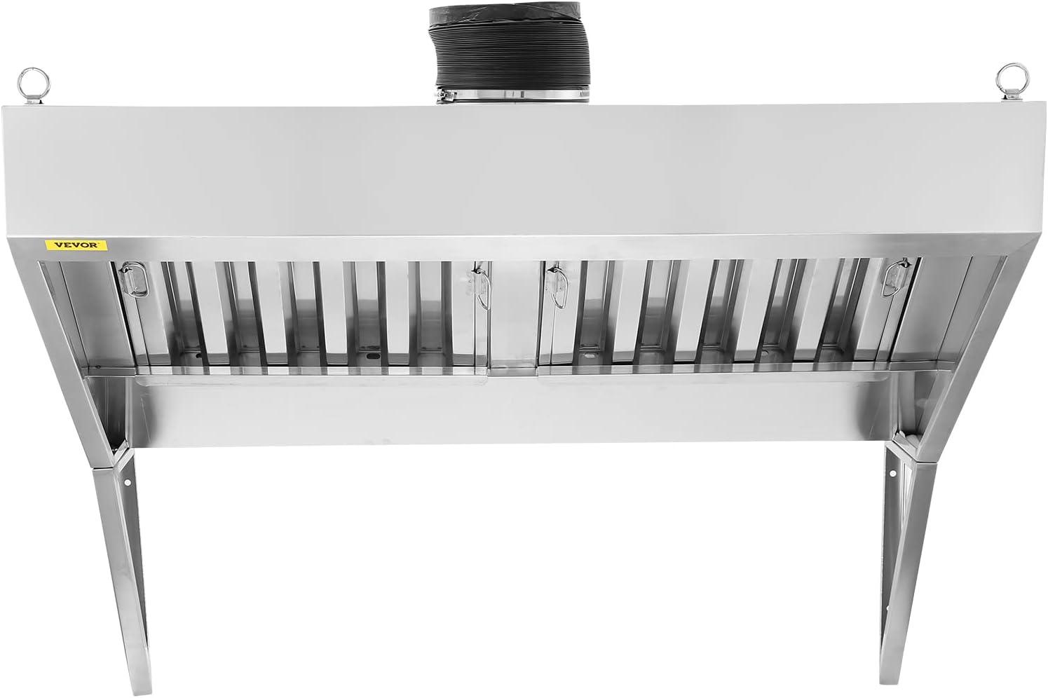 VEVOR Commercial Exhaust Hood, 6FT Food Truck Hood Exhaust, 201 Stainless Steel Concession Trailer Hood with 3 Detachable U-shaped Grid Oil Filter Mesh, Rust Resistant Vent Hood for Kitchen Restaurant(4FT)