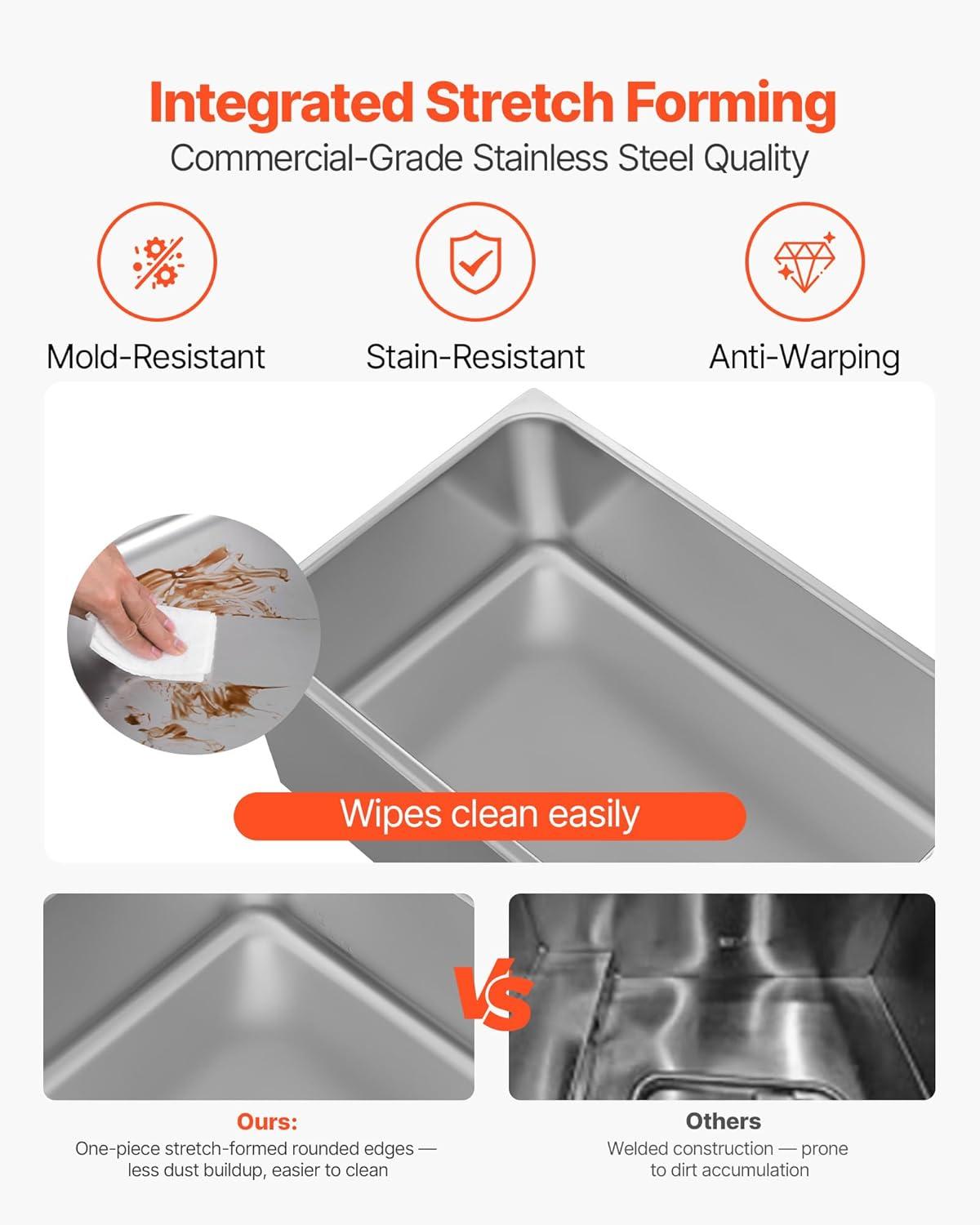 Quick Simple Cleaning: The smooth nonstick surface of this steam table lets you wipe grease and stains in seconds. The detachable parts allow thorough cleaning without leaving hidden spots, keeping everything neat after each use