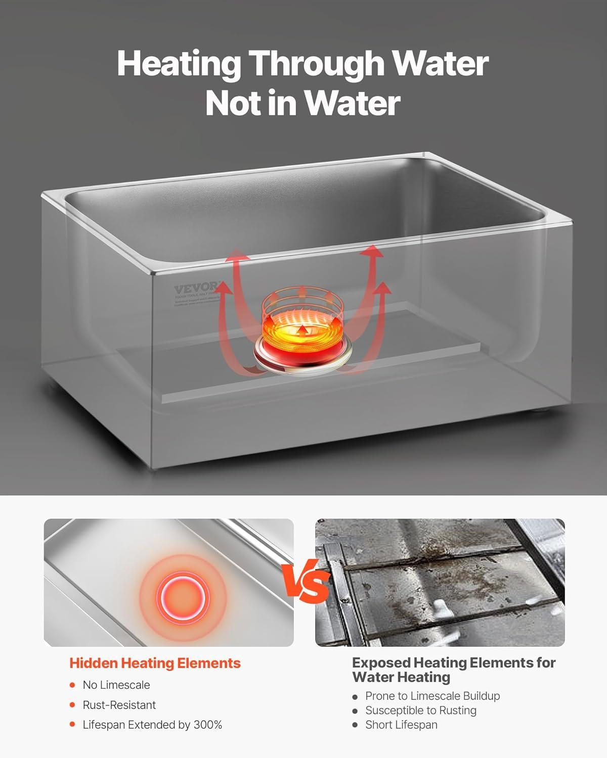 Long-Lasting Build: Made from stainless steel, this electric food warmer delivers steady performance you can trust. The stainless steel U-shaped heating tube heats food evenly and keeps working well through repeated use