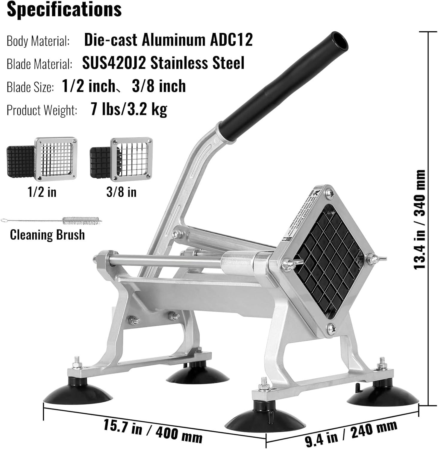 VEVOR Commercial French Fry Cutter, 1/2-Inch 3/8-Inch Blade Stainless Steel Vegetable Fruit Chopper with 2 Replacement Blades, Electric Potato Slicer Dicer for Restaurants & Home Kitchen(1/2 Inch + 3/8Inch)