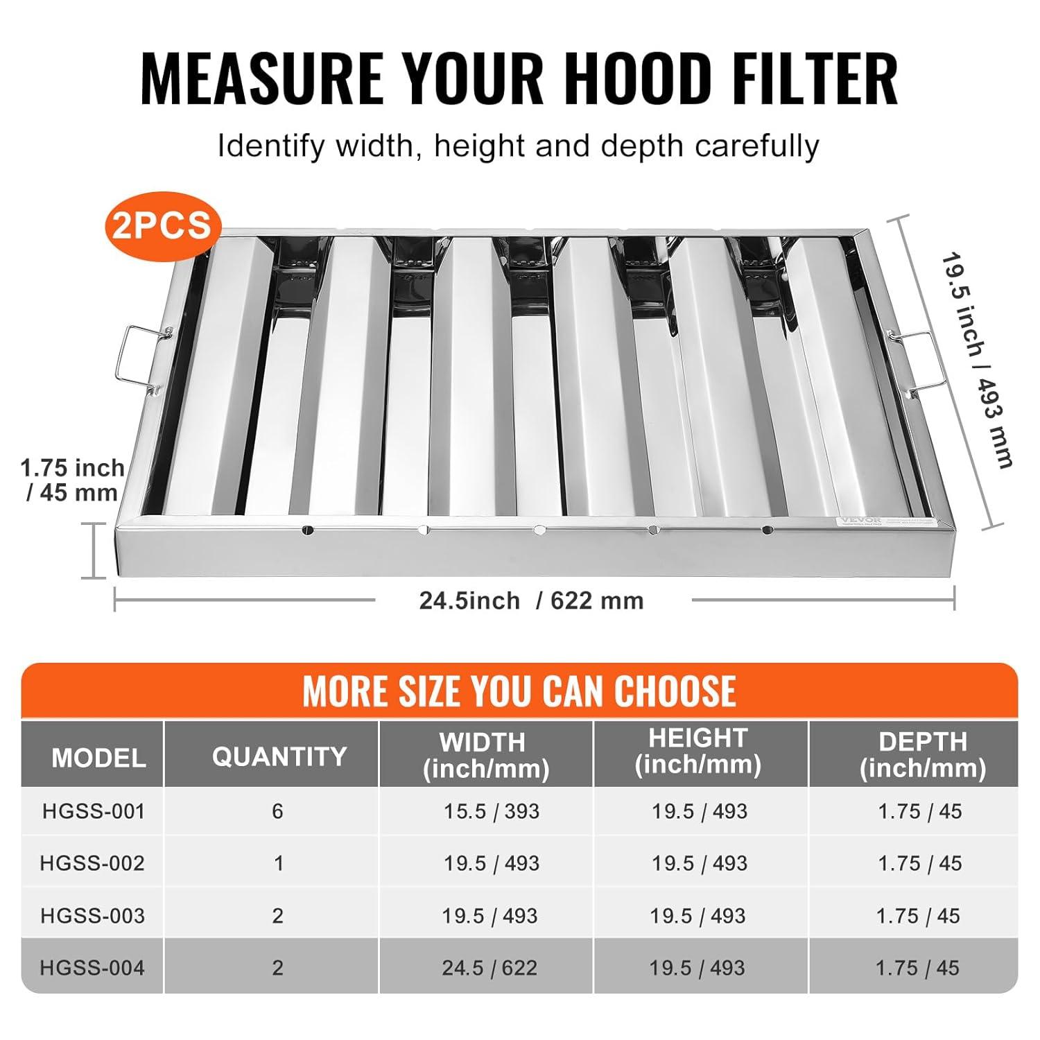 Perfect Fit for Your Hood: Size: 24.5W x 19.5H x 1.75D inch. This range hood filter is designed to fit precisely in your hood. Please carefully measure the width, height, and depth of your existing filter to ensure a perfect match.