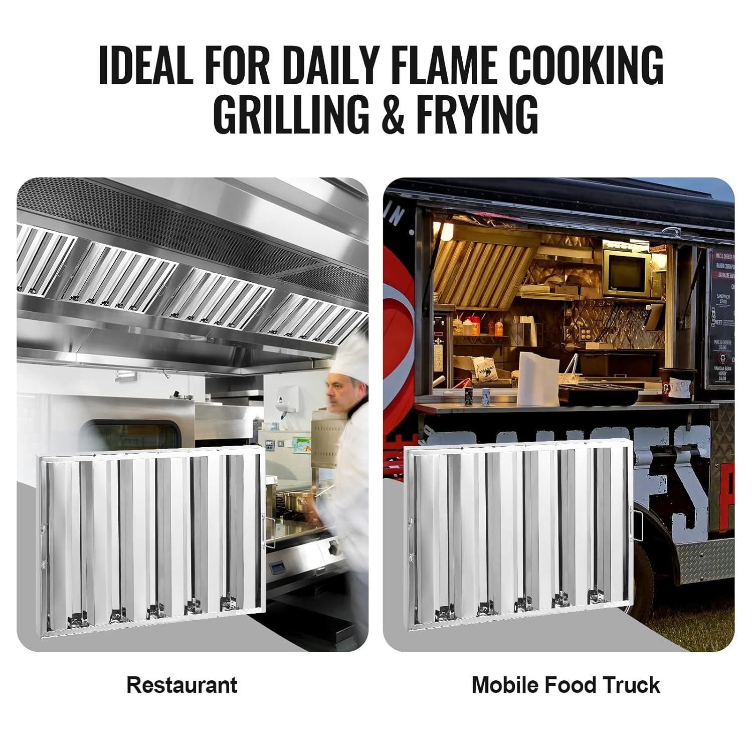 Efficient Grease Capture: Designed with 5 grease-repellent grooves and 10 oil outlets, this baffle grease filter efficiently handles high air volumes without blocking airflow. It is ideal for restaurants, mobile food trucks, and other commercial kitchens.