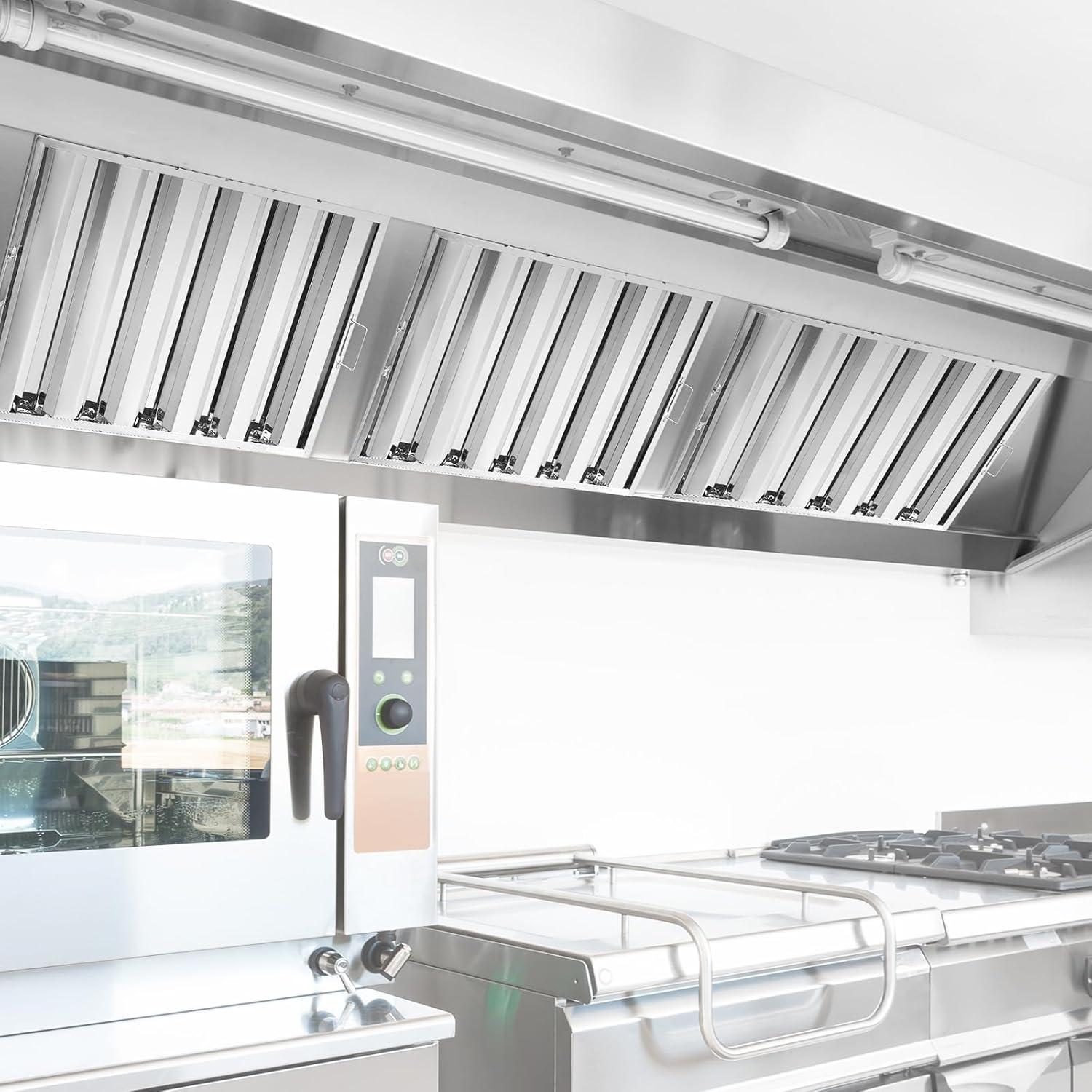 Easy Assembly & Removal: Equipped with convenient 2-side handles, this stainless steel hood filter is easy to install and detach, making maintenance a breeze. Please note that the hood shown in the picture is not included with the filter.