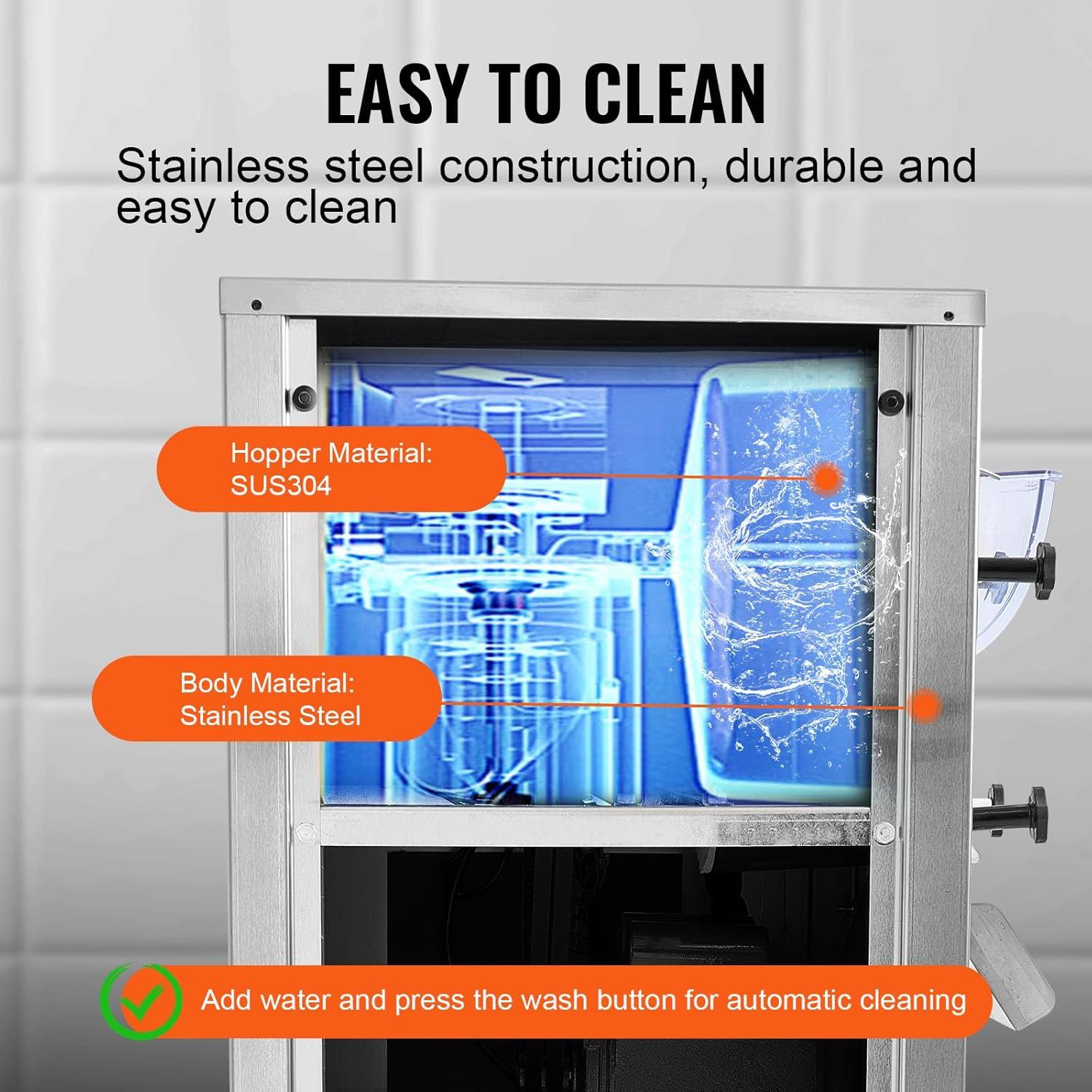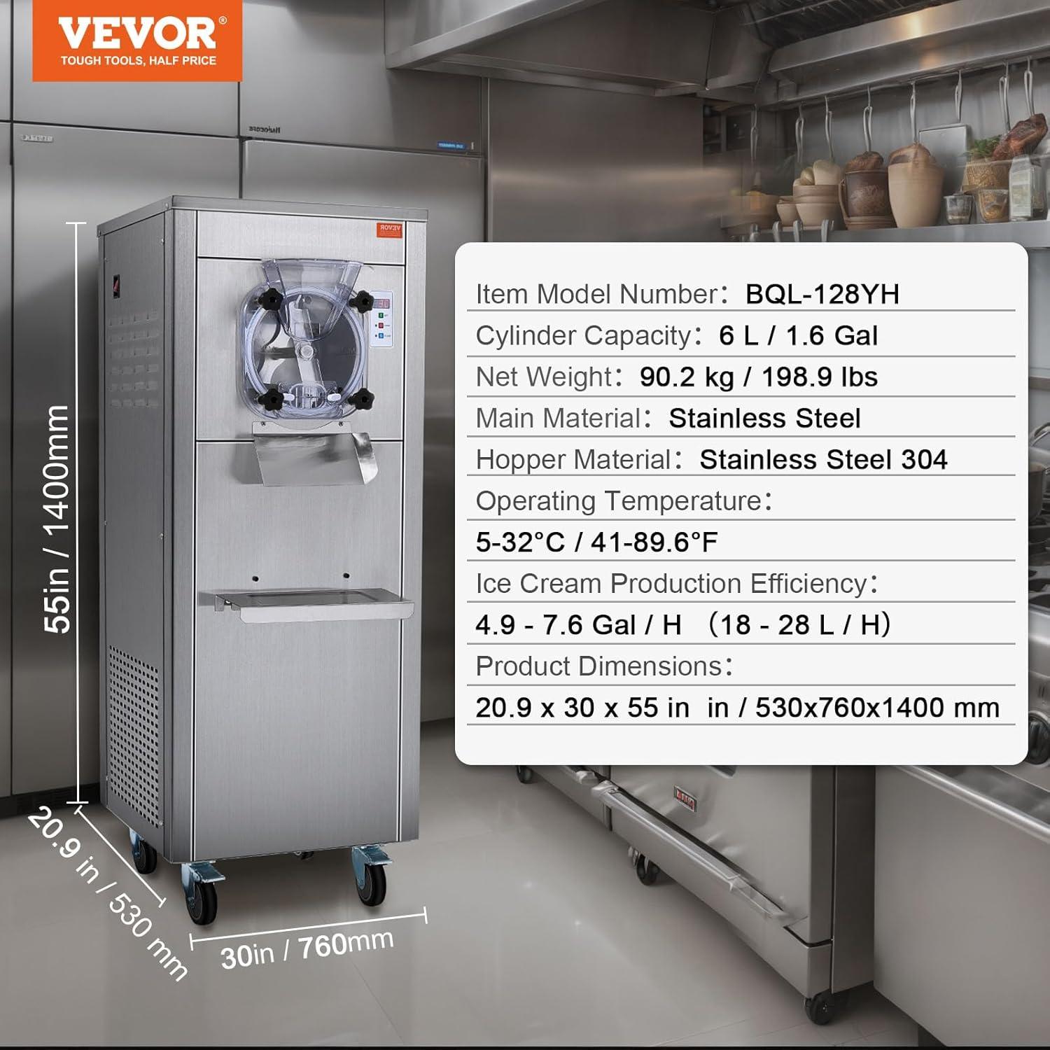VEVOR Commercial Ice Cream Machine, 2400w 1-Flavor Hard Serve Ice Cream Maker, 20-25L/H Yield, 8L Stainless Steel Cylinder, Digital Control Auto Clean, Adjustable Texture for Restaurants, Snack Bars(Vertical Hard Ice Cream Machine)
