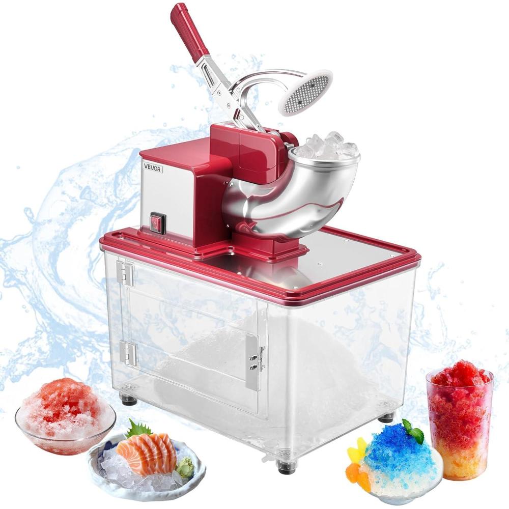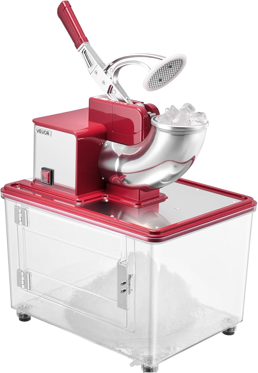 VEVOR Commercial Ice Crusher 661LBS/H, 350W Electric Snow Cone Machine with 4 Blades, 2000RPM Stainless Steel Shaved Ice Machine with 11 Gal Crushed-Ice Box, for Family Restaurants Bars, Blue(Red)
