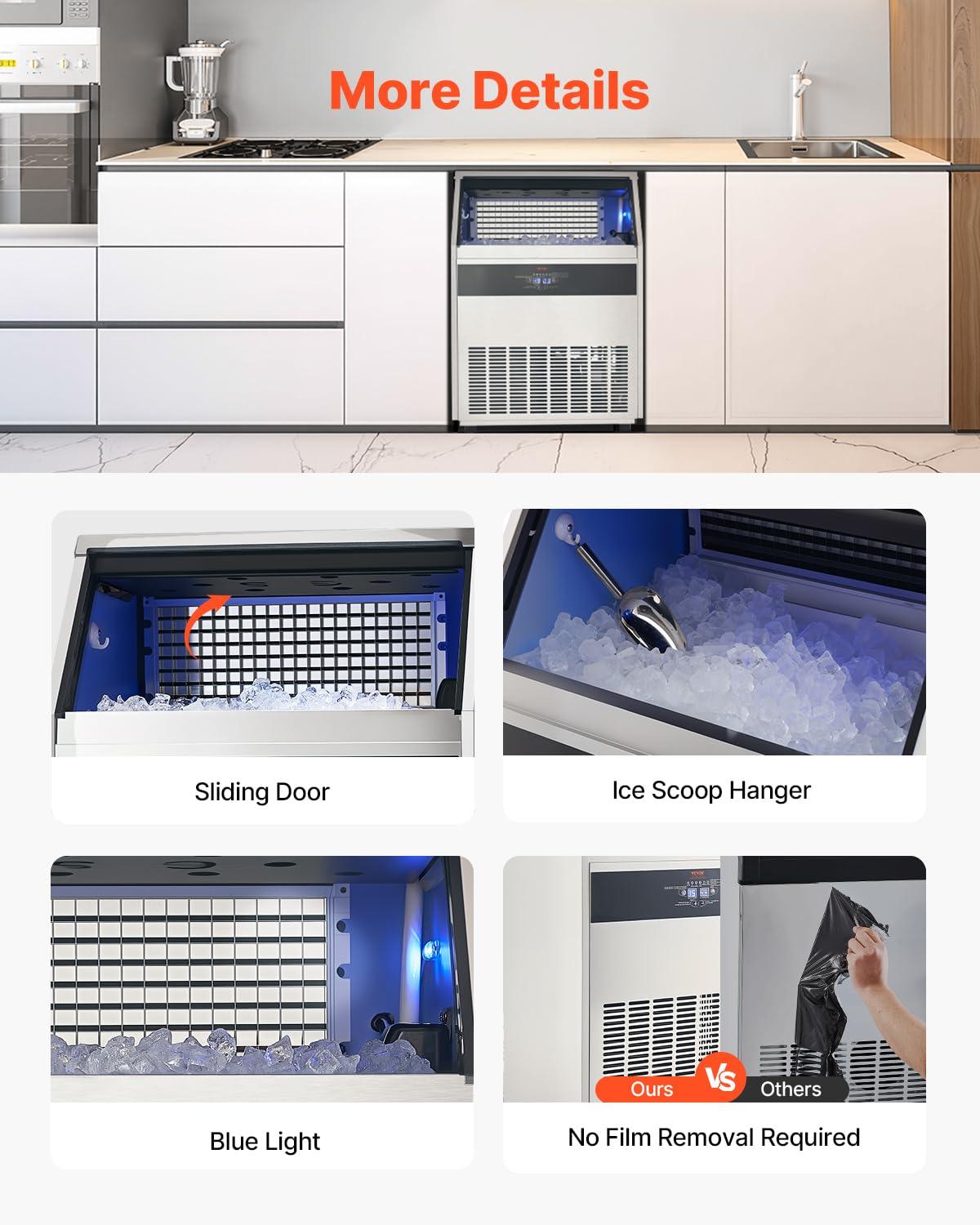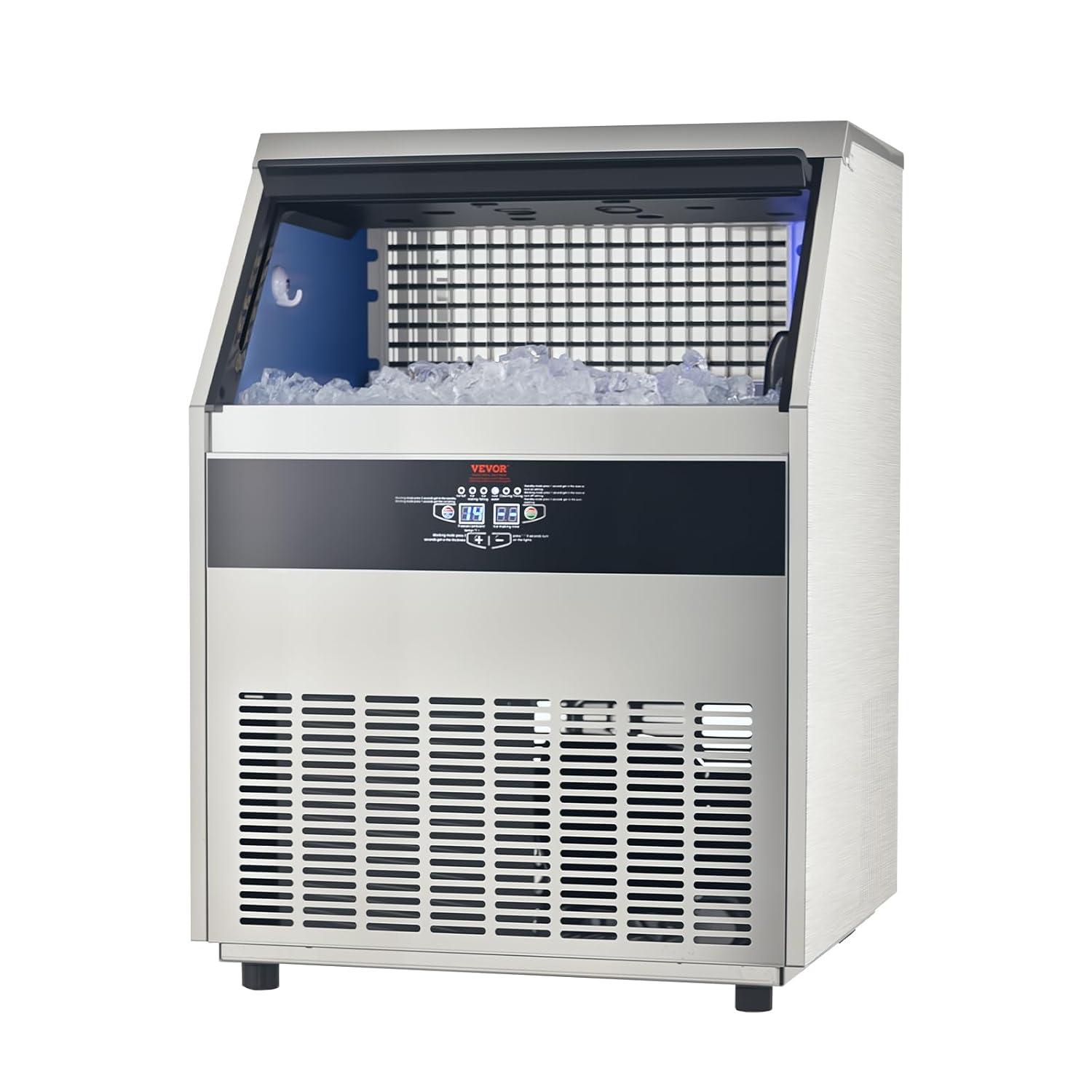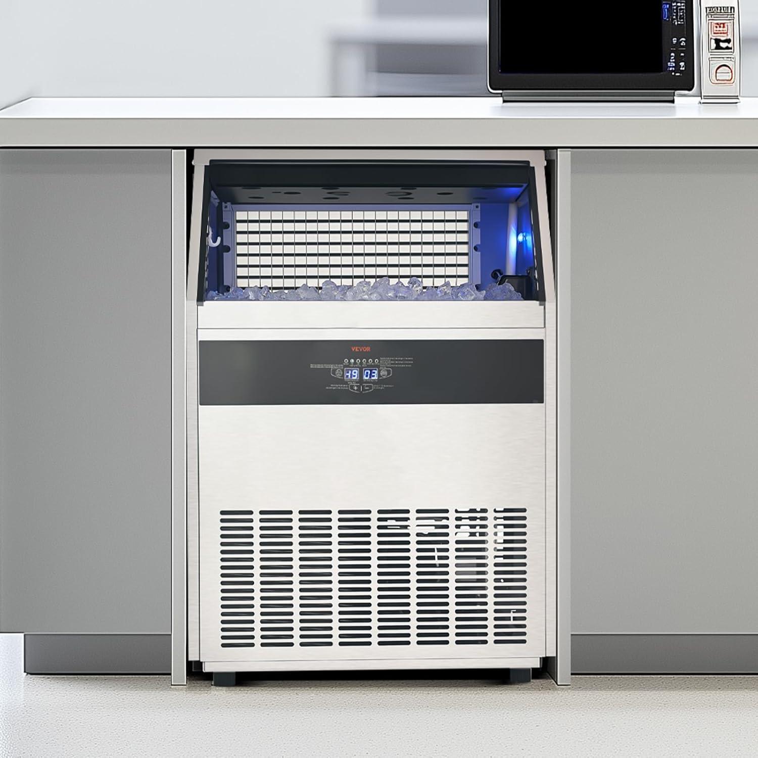 VEVOR Commercial Ice Maker, 100lbs/24H Ice Maker Machine with 28lbs Storage Capacity, 40 Ice Cubes in 15 Minutes, Freestanding Ice Maker for Bar Home Office Restaurant, LED Display, Self-Cleaning(440lbs/24H)