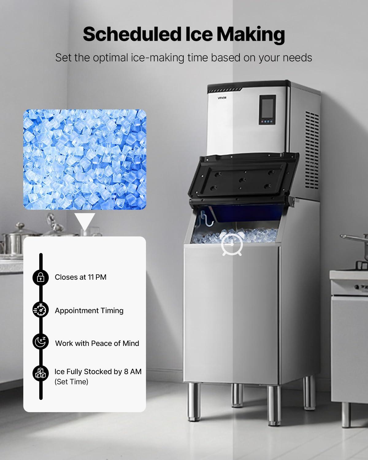 imageVEVOR Commercial Ice Maker Machine 800LBS24H IceMaking Machine with 300LBS Stainless Steel Storage Bin Auto SelfCleaning Ice Maker with Touchscreen for Bar Cafe Restaurant Business Commercial