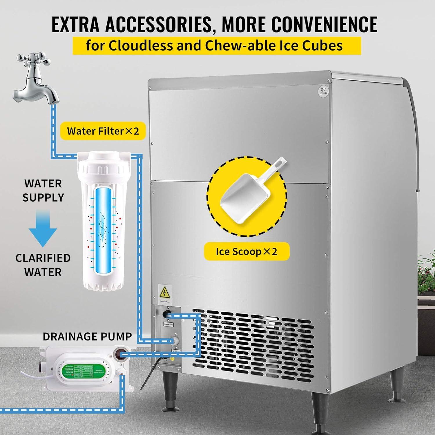 [Warranty and Service] VEVOR is committed to providing customers with premium industrial ice machines at reasonable prices. We offer service with this model①30-day resend or return on quality problems or logistics damage; ②2-year warranty from the original purchase date; ③Lifetime technical support. Customer satisfaction is our top pursuit. If you have any question when using,please contact us directly,we will response soonest(please kindly understanding it maybe later in legal holidays).