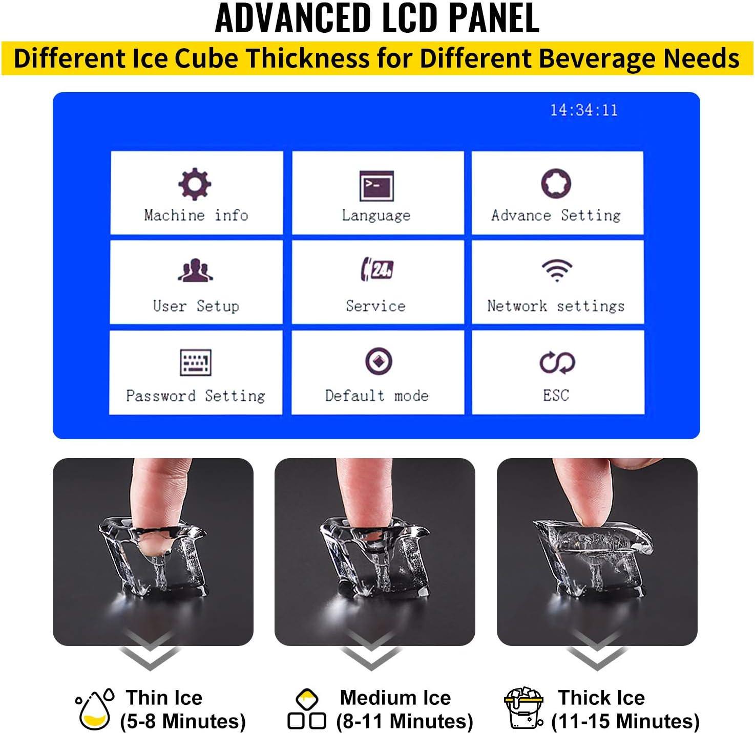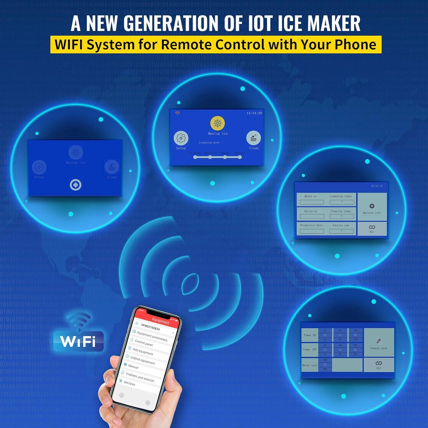 [Intelligent LCD Panel & WIFI Support] It operates with a 5.0 inch advanced touch screen, you can control the machine to conventional auto ice making, thickness adjustment, auto clean easily; and ice making appointment, wifi remote operation also supported(including start-up, cleaning, stop, fault prompts, etc.),you can easily control the ice state with your mobile phone on bed,sofa,kitchen anywhere with wifi system!
