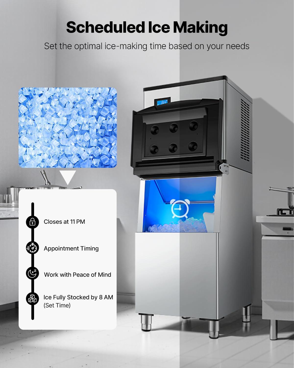 Large Ice Storage: The commercial ice maker (ice bin) can store up to 300 lbs of ice, providing a large reserve of ice for your needs