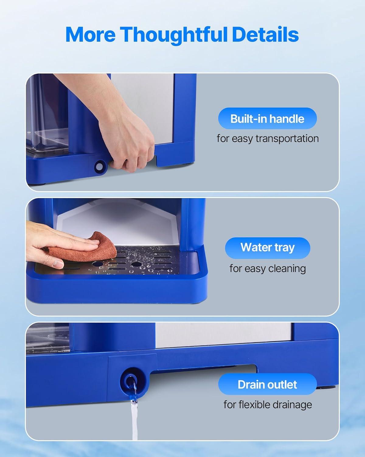 Thoughtful Design: Built-in handle for easy mobility, Detachable drip tray and drainage port for easy cleaning. Ideal snow cone shaver for dessert shops, restaurants, parties, and home use