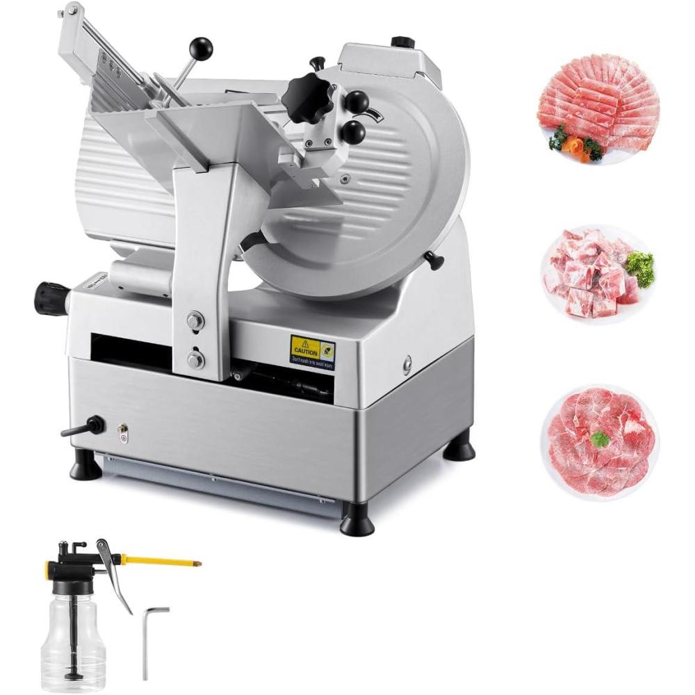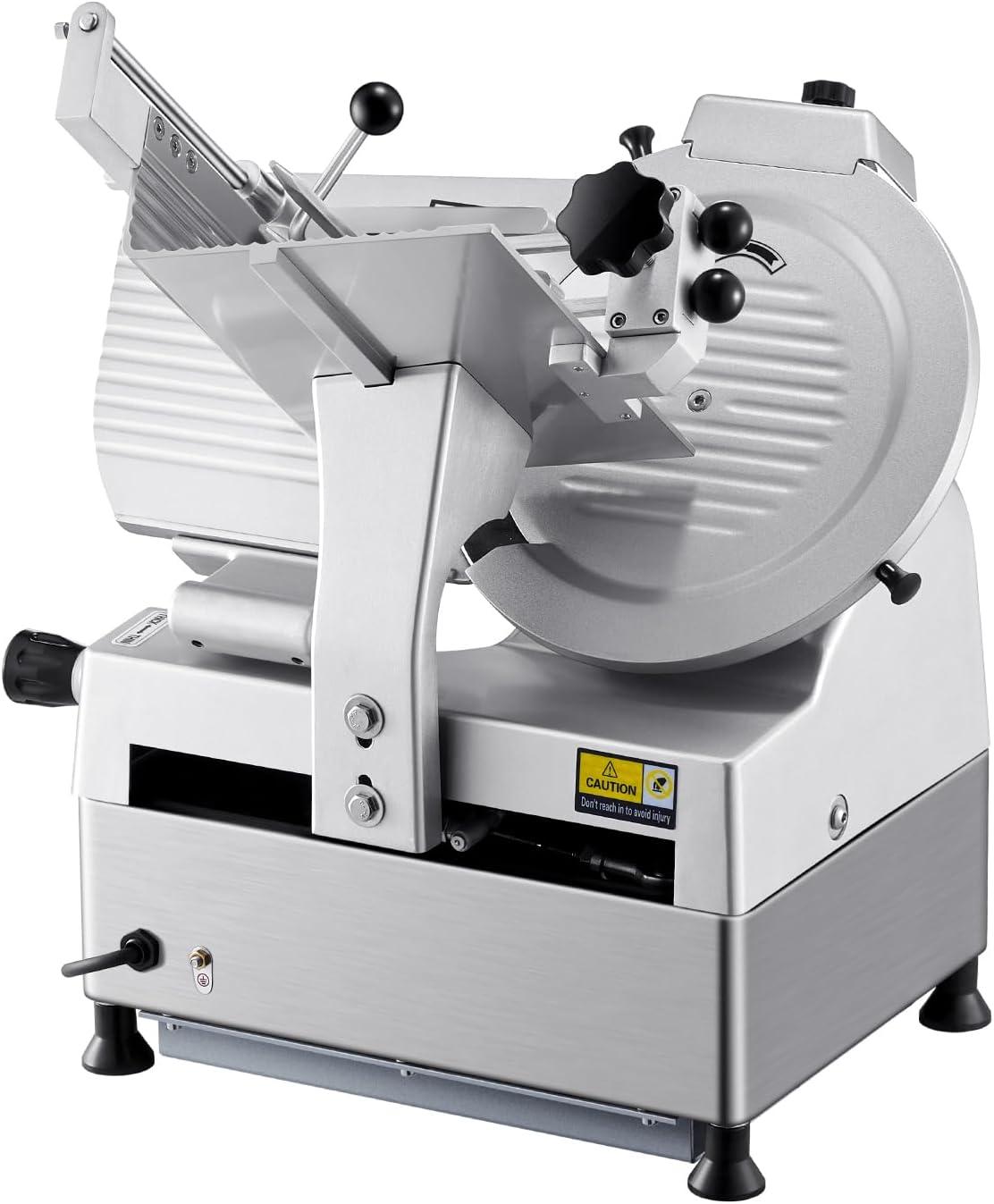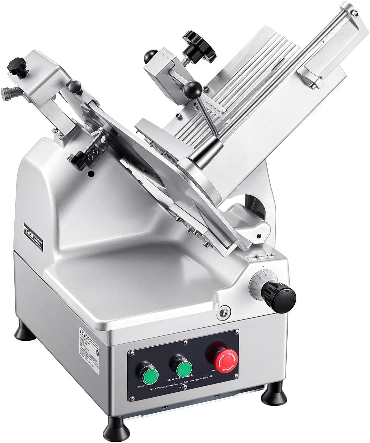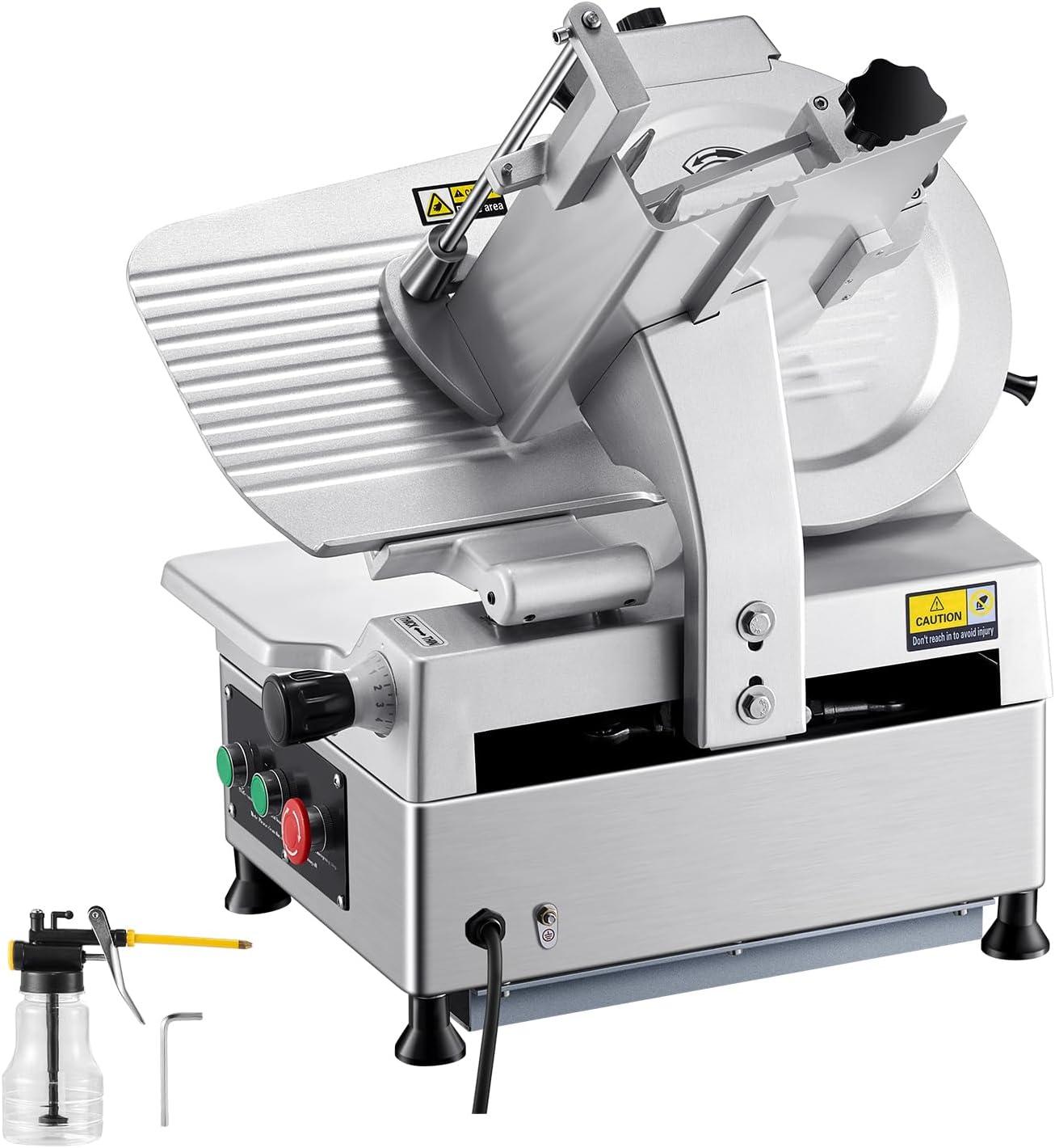 VEVOR Commercial Meat Slicer, 10 inch Electric Food Slicer, 240W Frozen Meat Deli Slicer, Premium Chromium-plated Steel Blade Semi-Auto Meat Slicer For Commercial and Home use(12IN-320W)