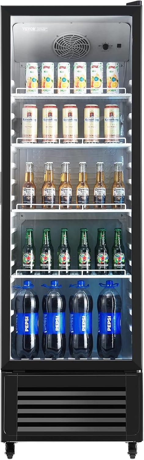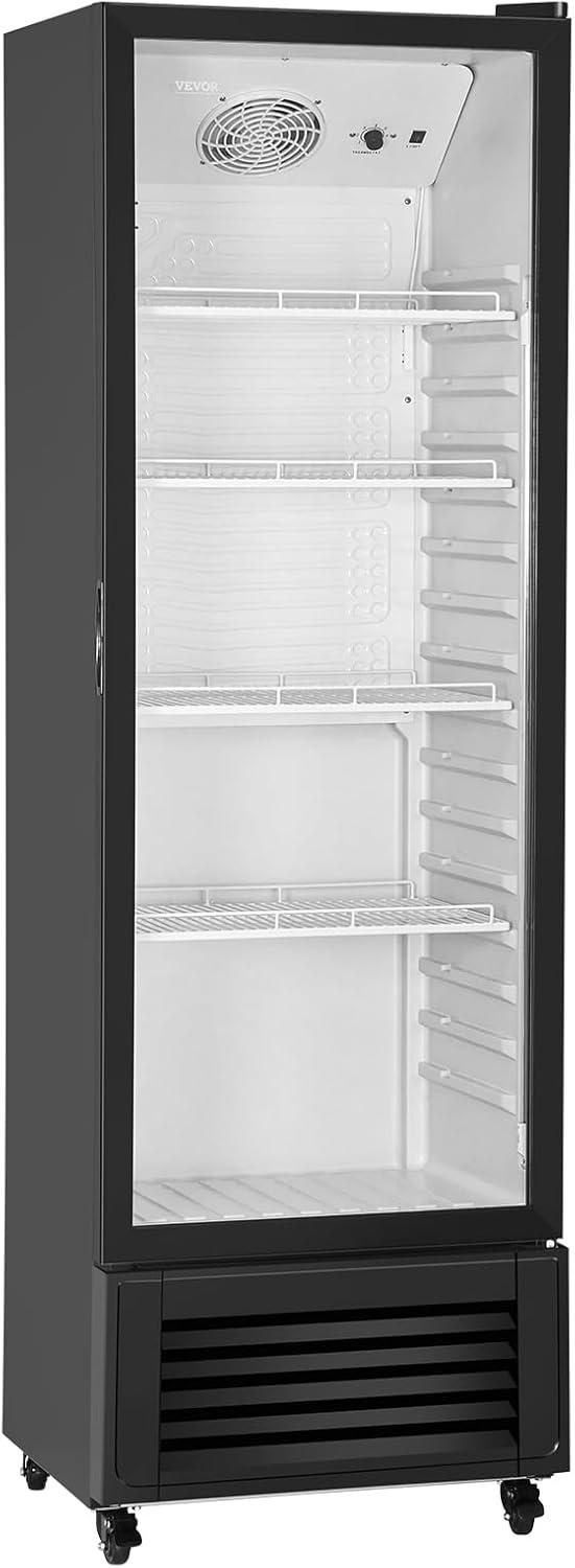 VEVOR Commercial Merchandiser Refrigerator, 11.47 CU.FT Glass Door Display Refrigerator, Upright Beverage Refrigerator Cooler Merchandiser with 4 Adjustable Shelves, Casters, Soft LED Light, Black(9.7 cu.ft.)