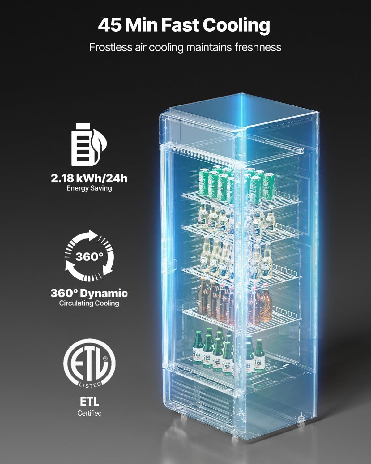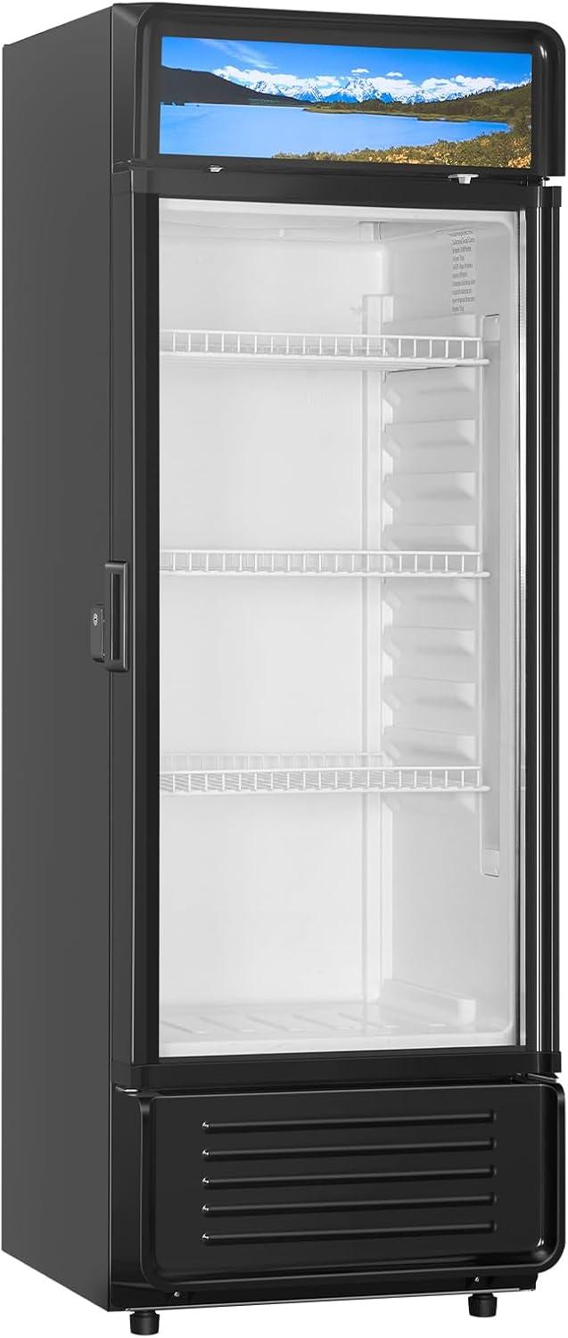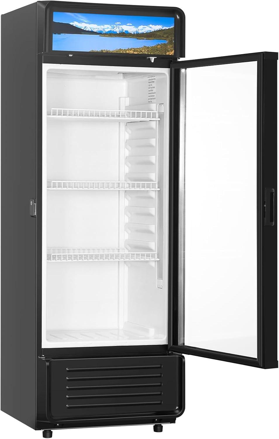 Exceptional Display Performance: Our commercial merchandiser refrigerator delivers double-layer high-transparency glass that keeps out external heat while letting you see the inside without opening the door. Plus, the LED lighting with an independent switch creates an eye-catching lighting experience, showcasing your beverages beautifully. Note: Please let the unit rest for at least 6 hours and then power on after receiving it