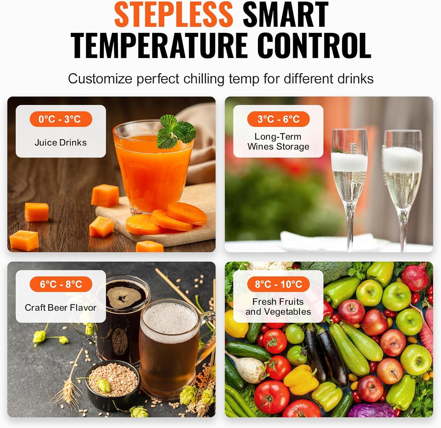 Fast Cooling: Our beverage refrigerator cooler merchandiser boasts a powerful compressor and 7-level temperature control (32ºF-50ºF / 0℃-10℃). With an air cooling system, it ensures uniform cooling, chilling your drinks in 45 minutes