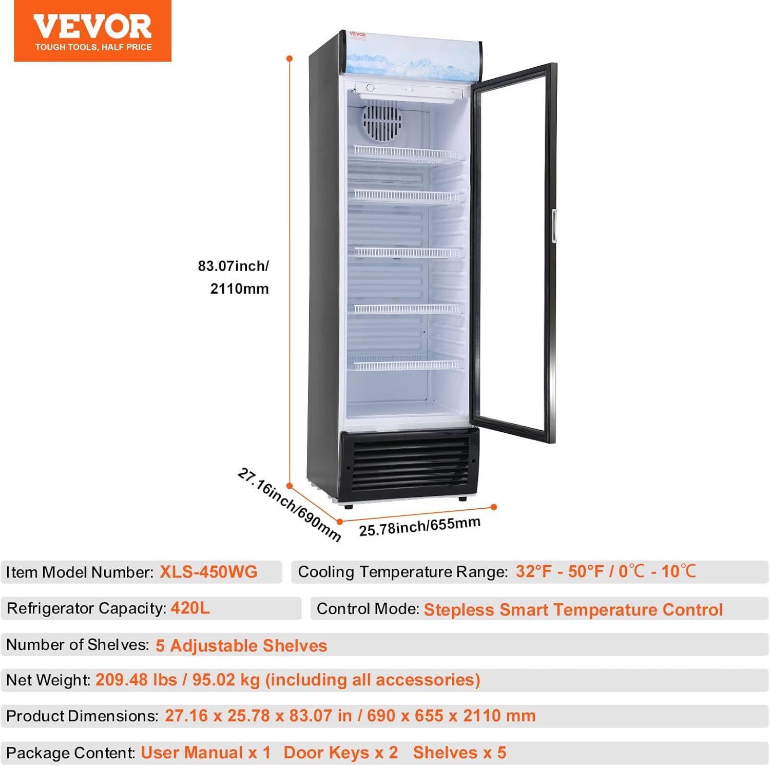 Exceptional Display Performance: Our commercial merchandiser refrigerator delivers double-layer high-transparency glass that keeps out external heat while letting you see the inside without opening the door. Plus, the LED lighting with an independent switch creates an eye-catching lighting experience, showcasing your beverages beautifully. Note: Please let the unit rest for at least 6 hours and then power on after receiving it