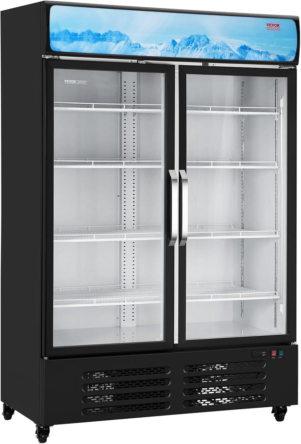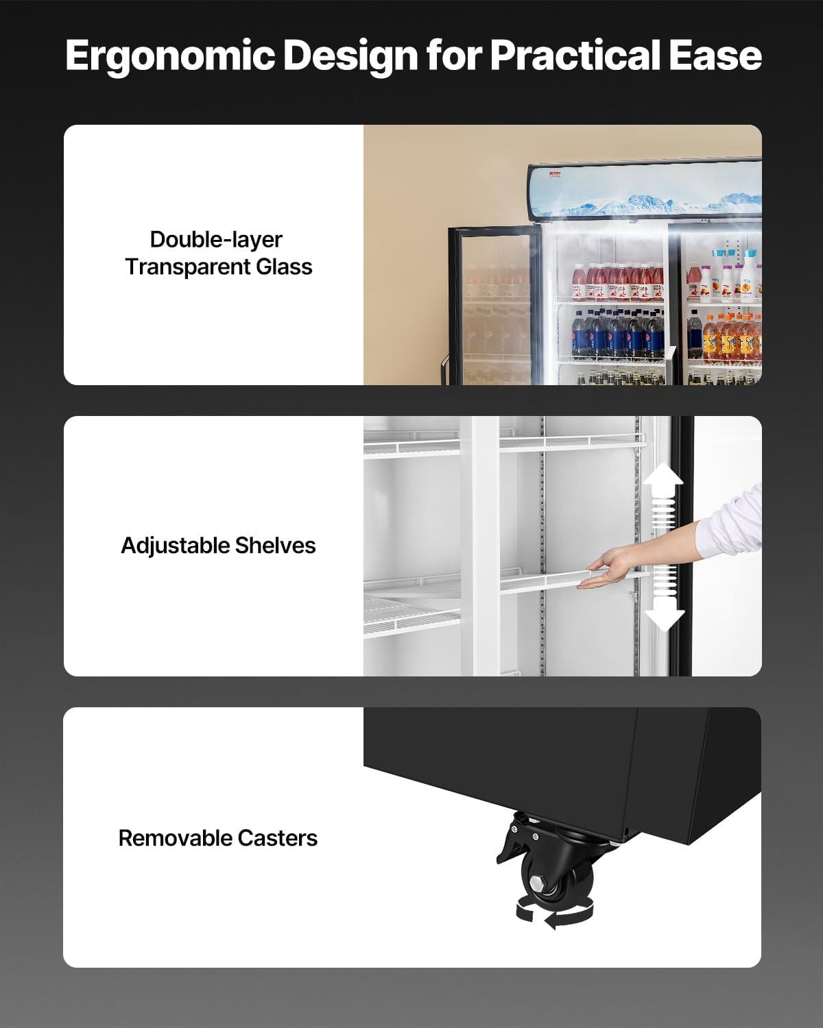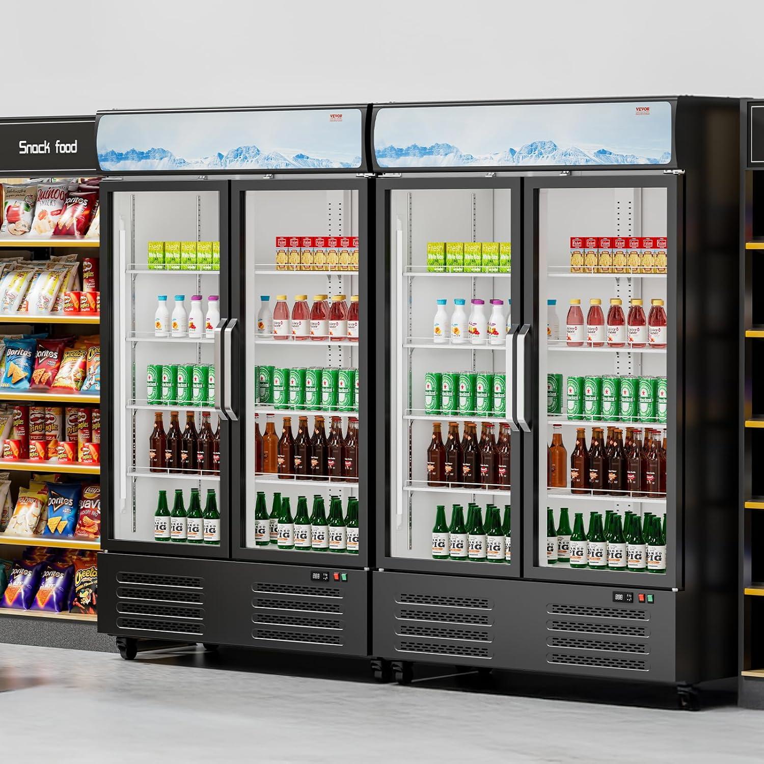 imageVEVOR Commercial Merchandiser Refrigerator 1147 CUFT Glass Door Display Refrigerator Upright Beverage Refrigerator Cooler Merchandiser with 4 Adjustable Shelves Casters Soft LED Light Black2669 cuft