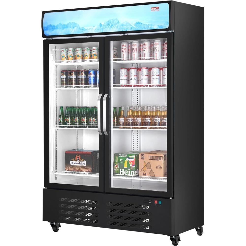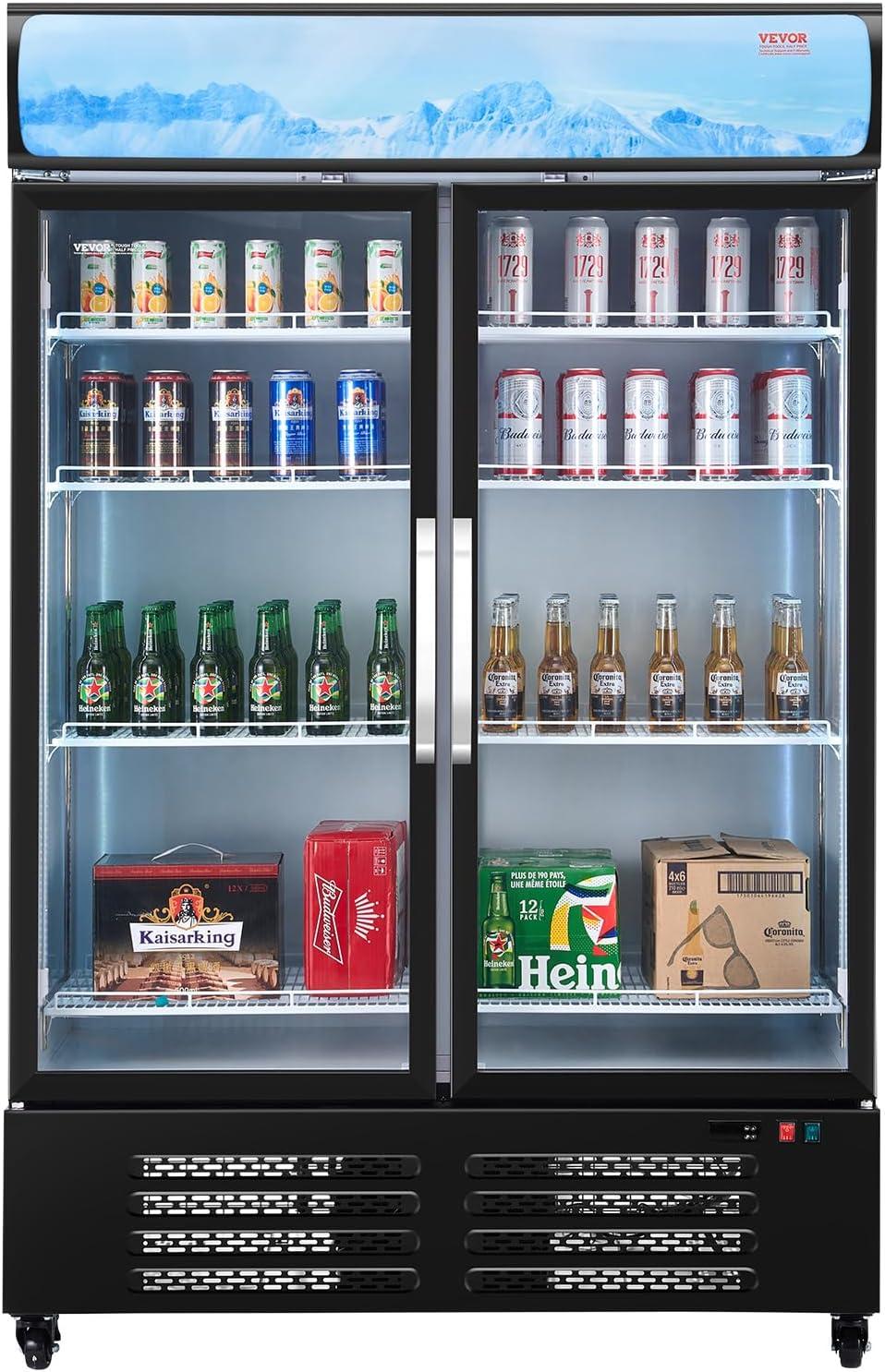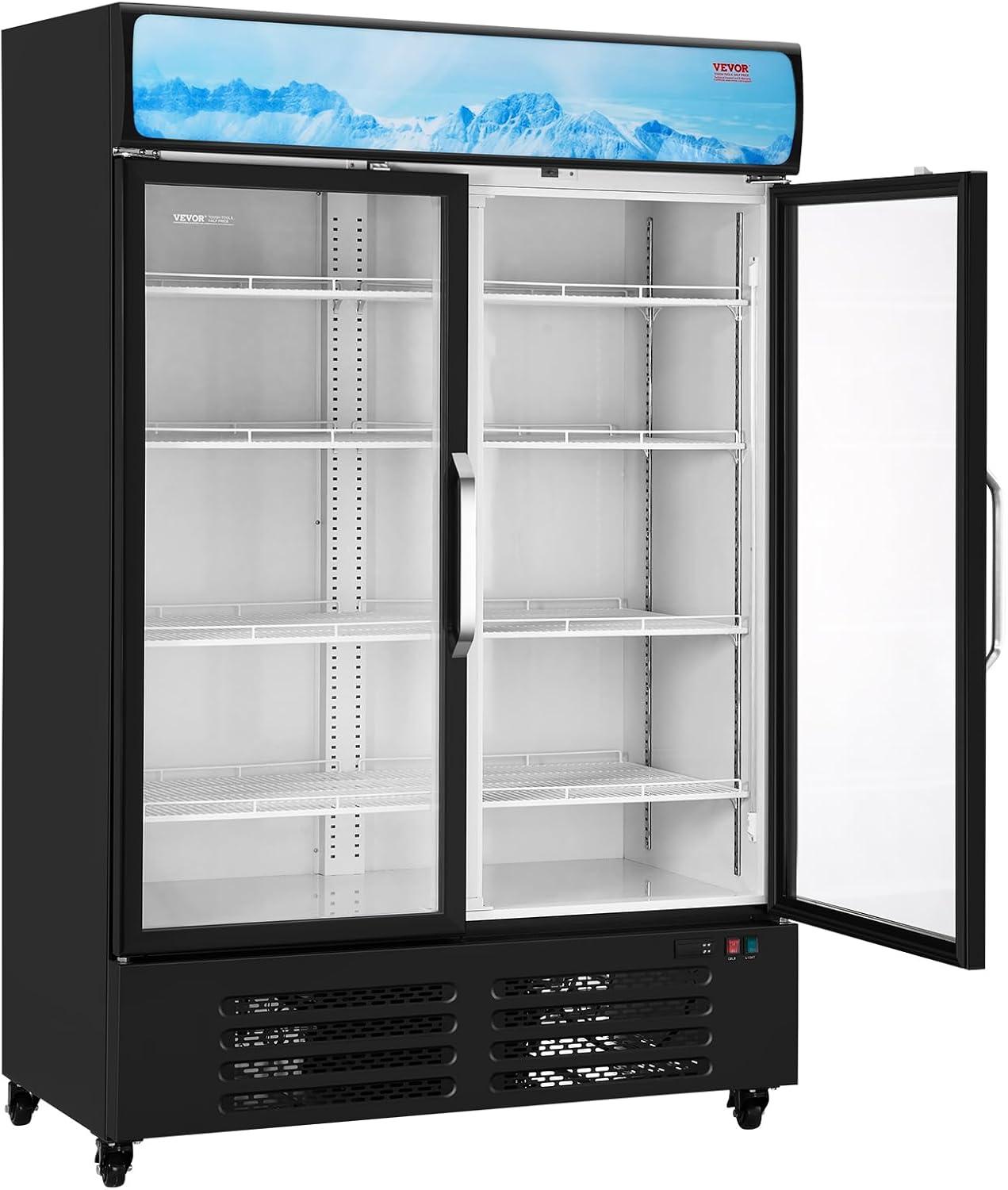 imageVEVOR Commercial Merchandiser Refrigerator 1147 CUFT Glass Door Display Refrigerator Upright Beverage Refrigerator Cooler Merchandiser with 4 Adjustable Shelves Casters Soft LED Light Black2669 cuft