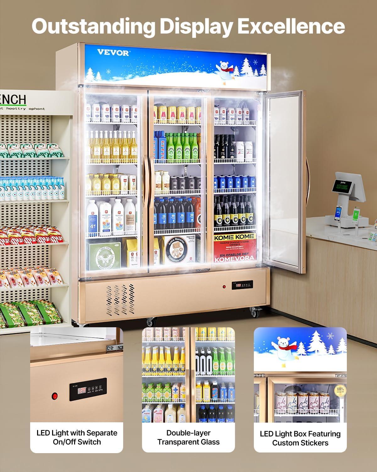 Transparent Glazed Door: The display refrigerator's reinforced hollow glass door makes you view your soda at a glance. The thickened foaming layer maintains the ideal temperature and humidity levels to ensure that your beverages stay cold and fresh. The durable aluminum alloy frame can make sure long term uses.