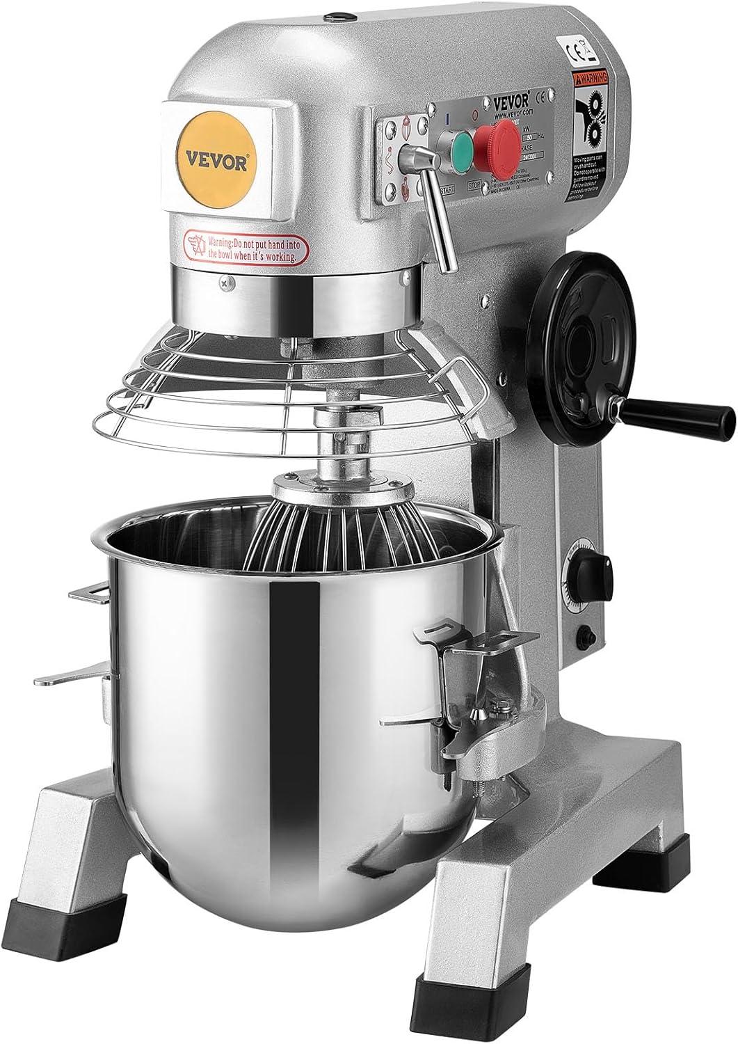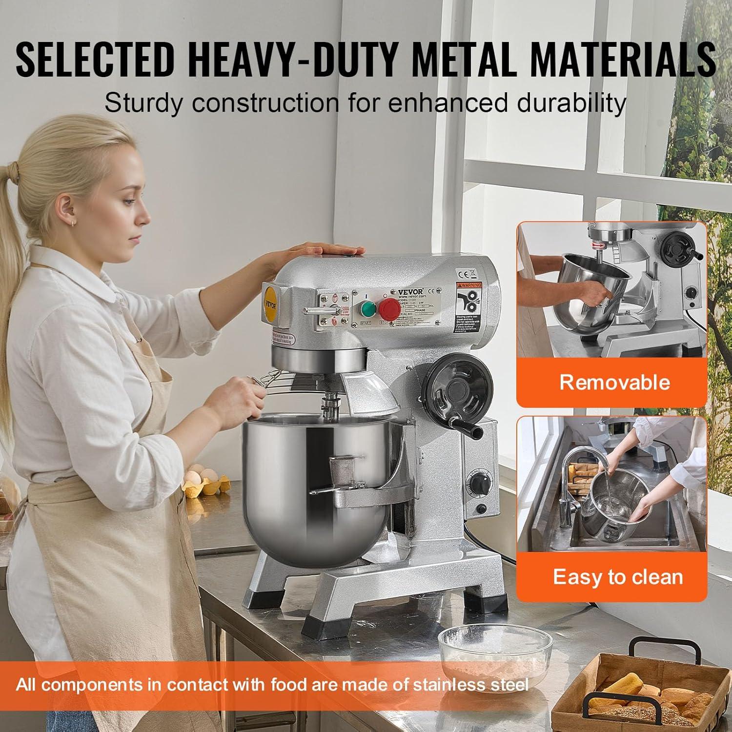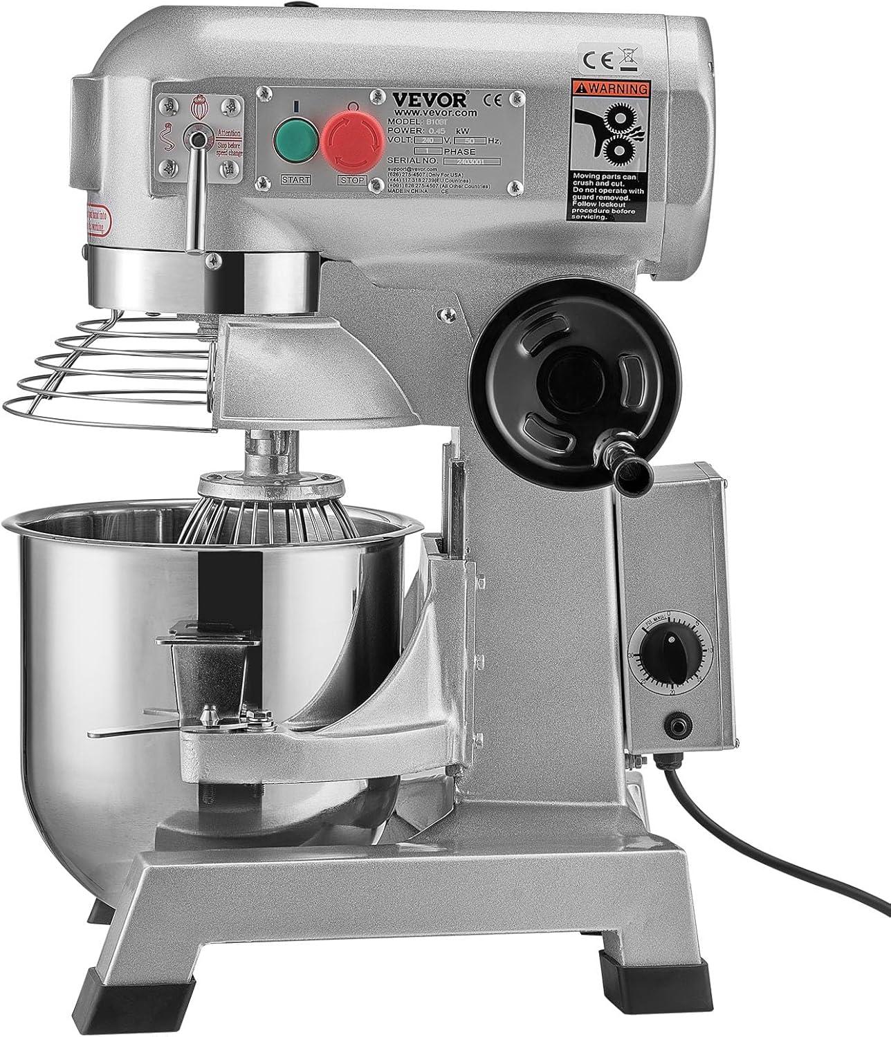 Versatile Machine: Our commercial stand mixer is equipped with 3 stirrers, including a dough hook, a flat beater, and a wire whip. The dough hook is used for smoother mixer operation and is ideal for pizza and other heavy dough. The flat beater is suitable for mashing potatoes or vegetables, mixing cakes, batters, or icing. The wire whip is widely applied in aerating light mixes such as whipped cream, egg white. These considerate accessories help you achieve the results you need for any recipe.