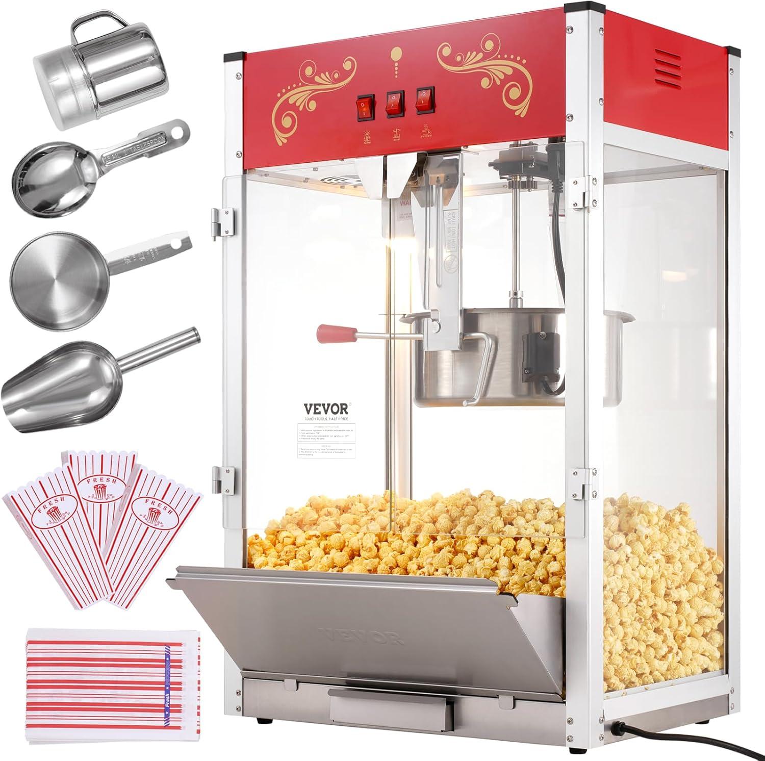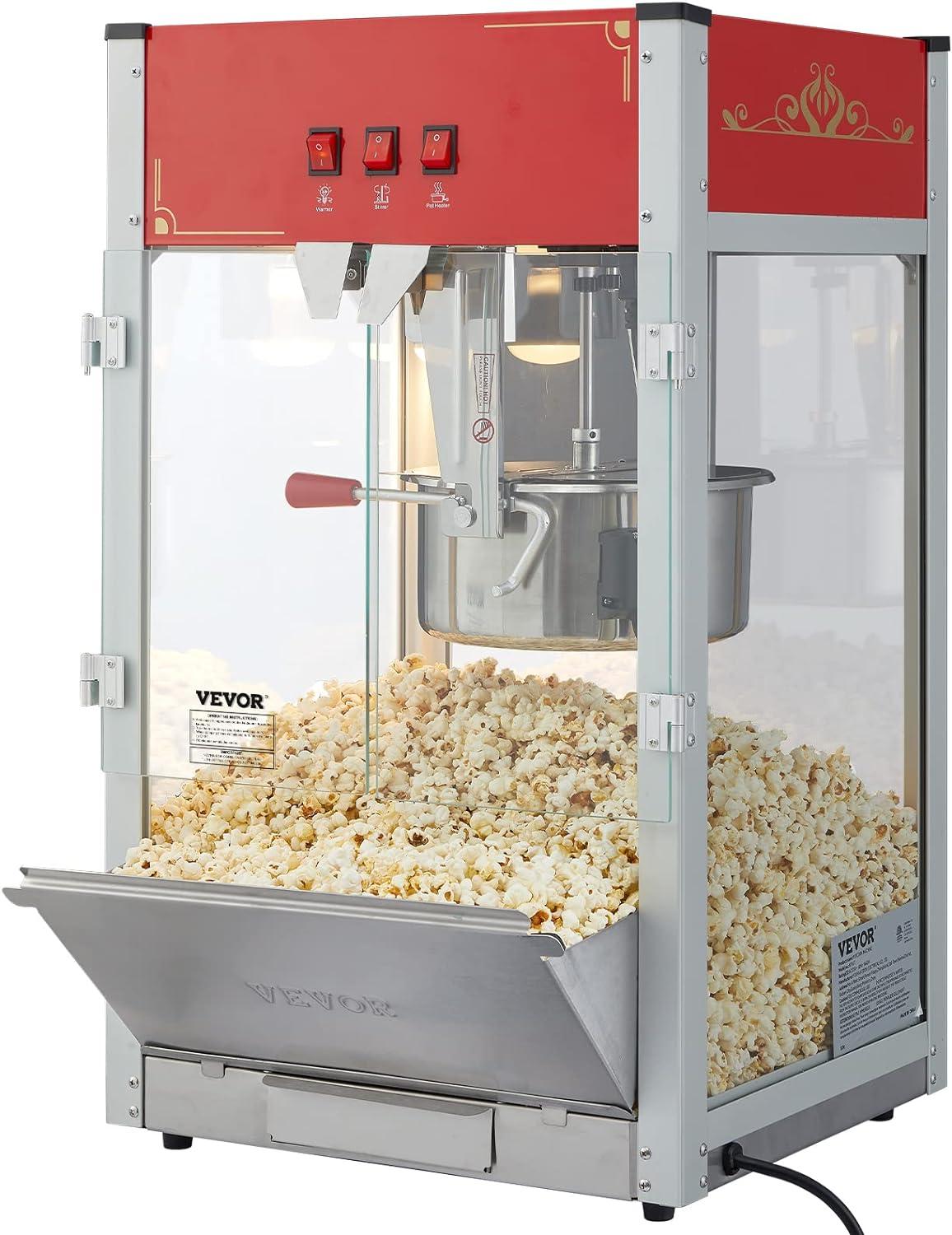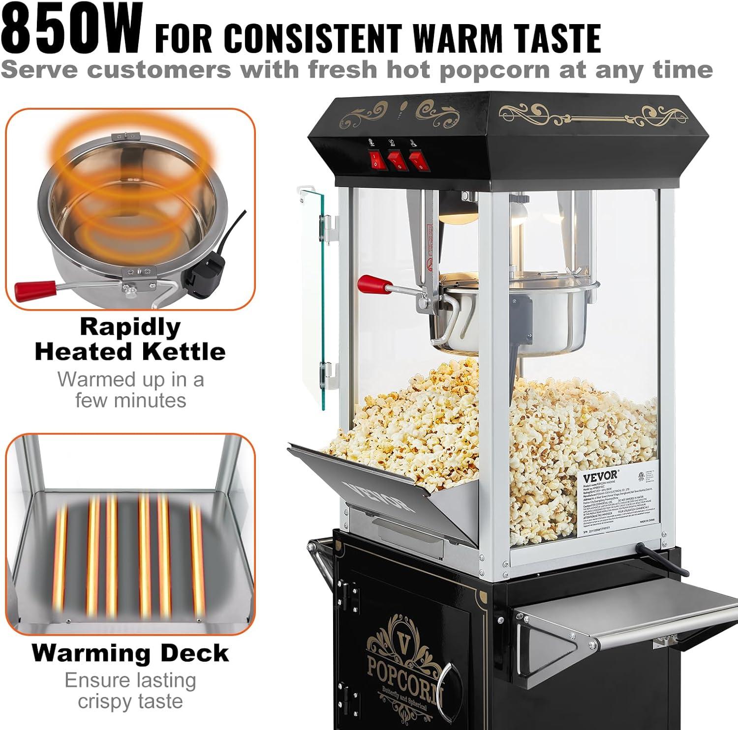 Powerful Heating, High Yield: This commercial popcorn machine boasts 850W of power and an 8 oz kettle, popping up to 48 cups of popcorn per batch (around 384 oz) and keeping up with the demand of your busy concession stand. NOW that is a lot of popcorn. It takes only a few minutes to preheat the kettle. Then the hot popcorn will flow as quickly as your customers can eat it up. Get ready to keep sports fans, festival-goers, and party guests content with plenty of popcorn to go around.