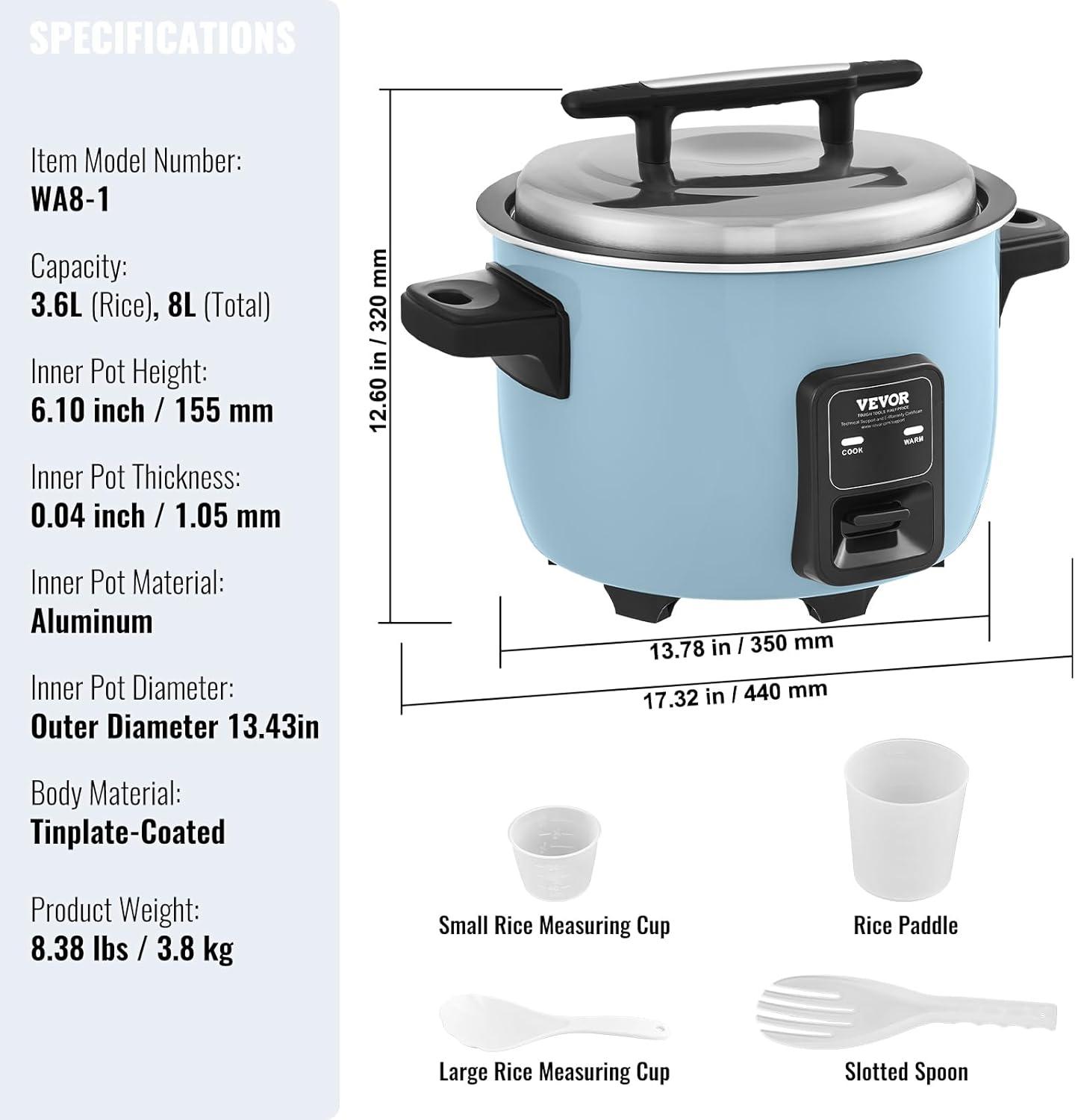 VEVOR Commercial Rice Cooker, 60-Cup Rice Cooker, 13.74 Qt / 13 Liter Large Rice Cooker and Warmer with Nonstick Inner Pot, Fast Cooking and 24-Hour Keep Warm, with Rice Cup and Paddle, for Restaurant(40 CUPS COOKED RICE)