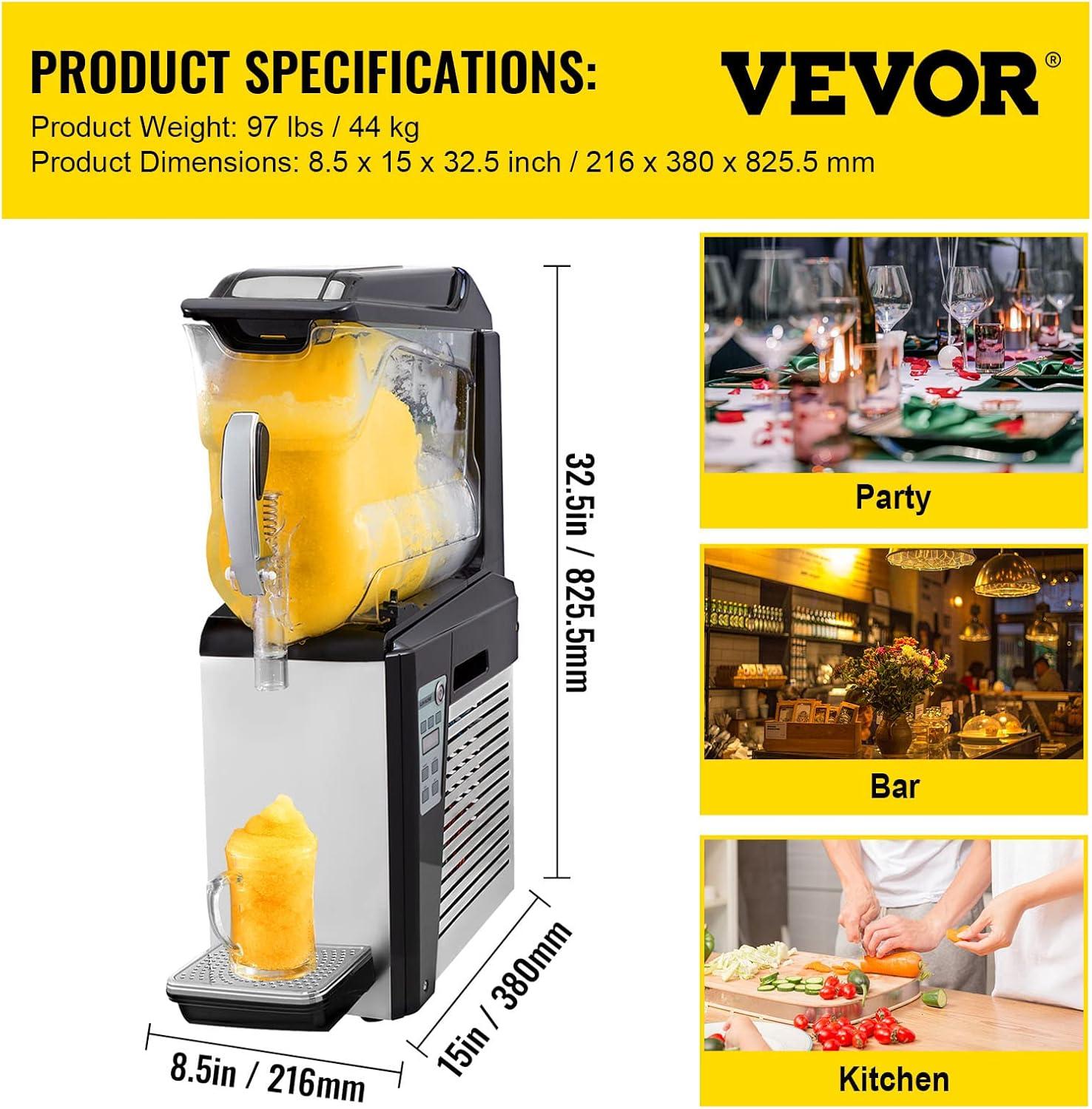 imageVEVOR Commercial Slushy Machine 10L Slushie Machine Frozen Drink Maker 600W Stainless Steel Margarita Wine Slush Smoothies Maker for Commercial and Home Use